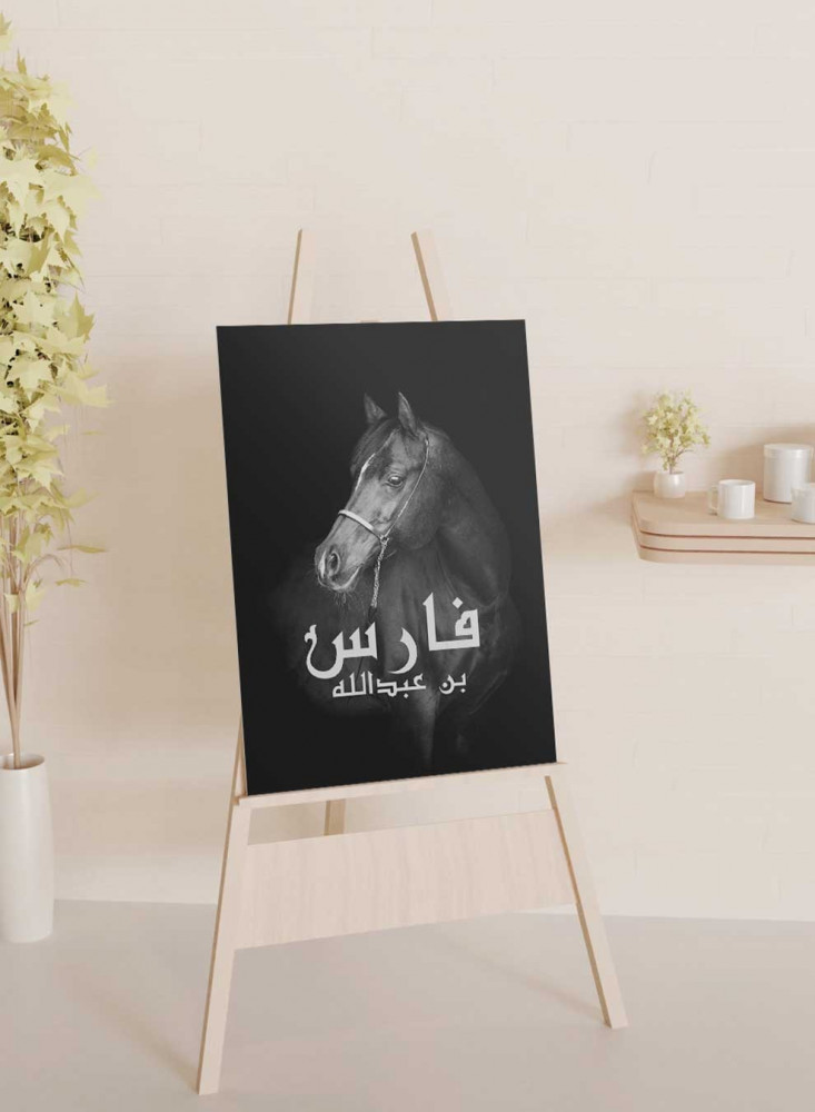 لوحة بأسمك مع خلفية فرس تعبر عن الشجاعة والفخر، يمكنك إهداء لوحات بالاسم إلى أحد أصدقائك حتى باب منزله، أو يمكنك تزيين منزلك بها. تتناسب مع مختلف المساحات حيث تأتي بمجموعة من المقاسات المختلفة وأيضًا الإطارات.