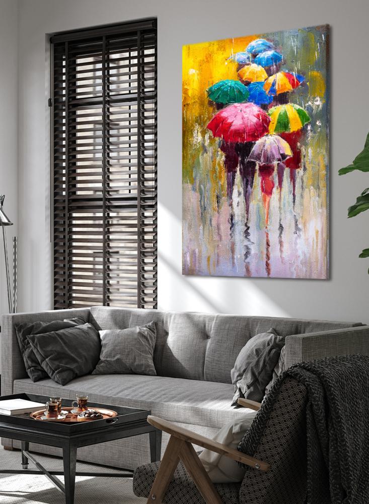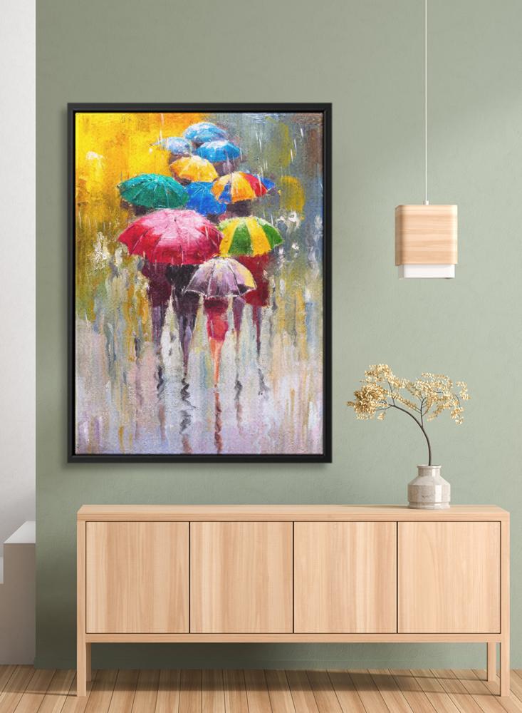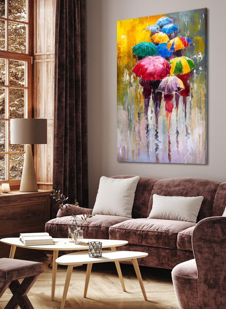 لوحة كانفاس على إطار خشبي بتصميم لوحة زيتية يوم ممطر