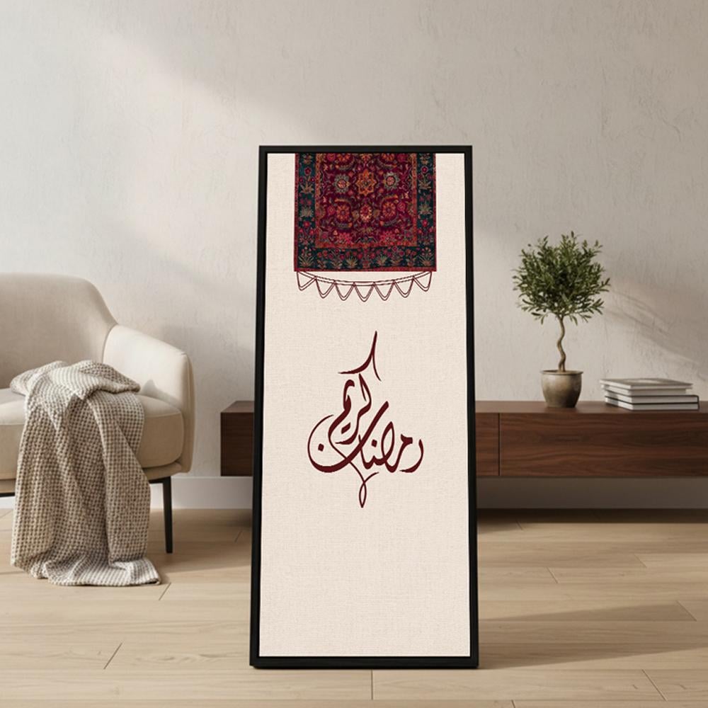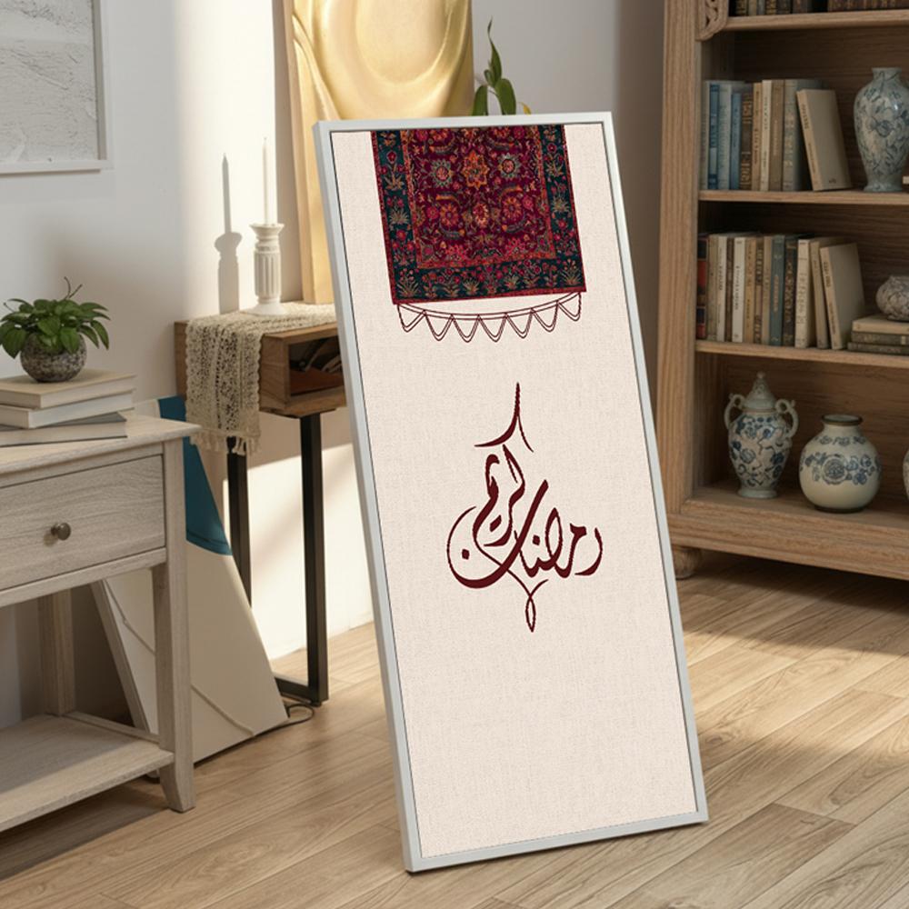 تضفي لوحة كانفاس على إطار خشبي مع حامل خلفي بتصميم رمضان كريم من لوحة حضورًا جماليًا يعكس أجواء الشهر الفضيل داخل المساحة المنزلية. يظهر التصميم المستوحى من الاحتفال بروحانية رمضان على سطح كانفاس مطبوع بأحبار مقاومة لتلاشي الألوان، ما يحافظ على وضوح التفاصيل وعمق الألوان لفترات طويلة. الإطار الخشبي المتين يثبت اللوحة بإحكام، بينما يسمح الحامل الخلفي بوضعها على الأرض دون الحاجة لتعليقها على الجدران، ما يمنح مرونة في العرض ويتناسب مع مختلف أنماط الديكور.