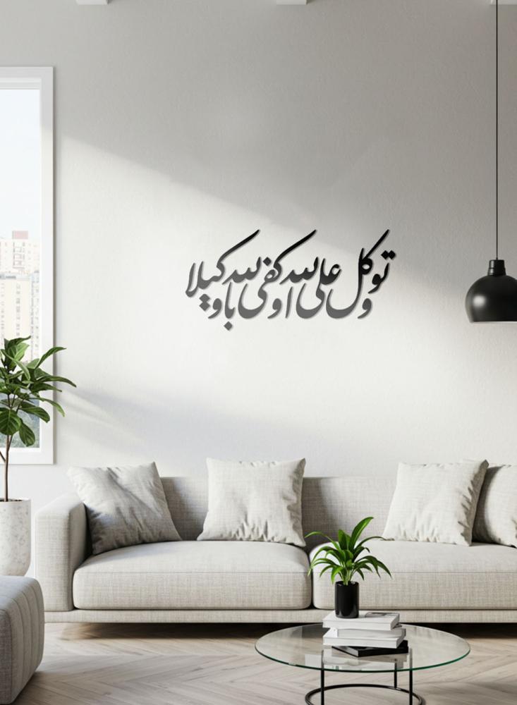 أضف لمسة من الأناقة الروحية إلى منزلك مع هذه اللوحة الجدارية المصنوعة من الأكريليك والمصممة على شكل آية قرآنية بتقنية القطع بالليزر الدقيقة. تتميز بتصميم أنيق من الأكريليك الأسود بسماكة ٣ ملم بمظهراً راقياً يضفي على المكان طابعاً فريداً. مزوّدة بلاصق خلفي قوي لتثبيت سهل وآمن على الجدار دون الحاجة إلى أدوات أو حفر. تأتي هذه اللوحة بمقاس ٦٠ × ٦٠ سم. صنعت بفخر في المملكة العربية السعودية.