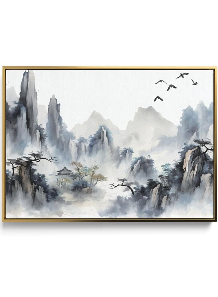 لوحة كانفاس على إطار خشبي بتصميم فن تجريدي منظر طبيعي