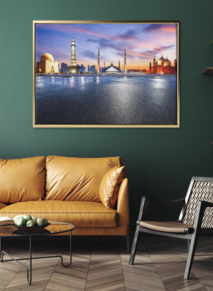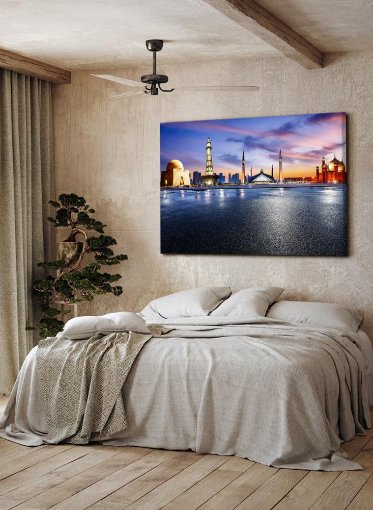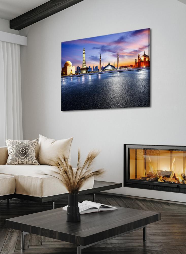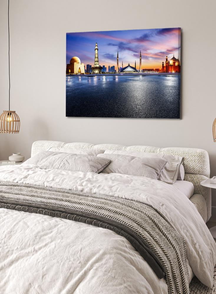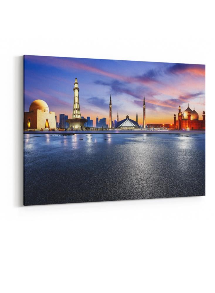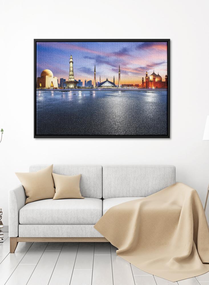 تمنح لوحة حائط مصنوعة من الكانفاس ومثبتة على إطار خشبي عريض حسًا بصريًا معاصرًا وتفاصيل واضحة لأي غرفة من متجر لوحة. تعتمد هذه القطعة على طباعة دقيقة تبرز معالم ضريح جناح في مدينة كراتشي، ما يعكس المستوى العالي لجودة التصنيع المحلية. صُممت اللوحة لتدوم طويلاً بفضل خاماتها المختارة وتقنياتها الحديثة، كما يمكن تخصيصها بسهولة لتناسب تفضيلات الديكور المختلفة وتصل جاهزة مباشرة للتعليق.
