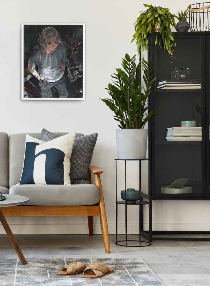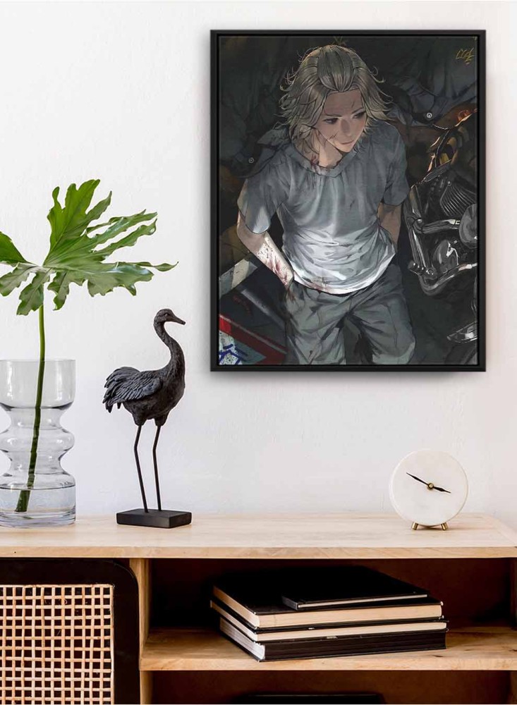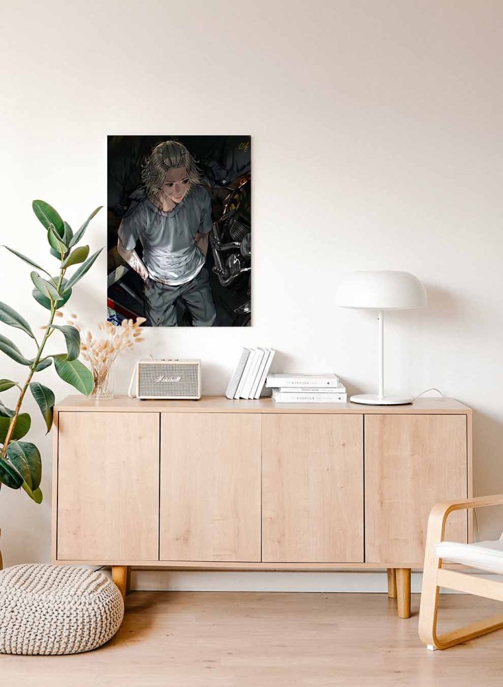 طوكيو ريفينجرز هي سلسلة مانغا يابانية من كتابة ورسوم كين واكوي، حققت السلسلة نجاح كبير، ولذلك يقدم لك متجر لوحات لوحة طوكيو ريفنجرز من أجل شرائها من قبل محبي هذه السلسلة أو محبي الانيميشن بشكل عام. يظهر في مانجيرو سانو (مايكي) وهو زعيم عصابة طوكيو مانجي. تتميز هذه اللوحة فإظهارها لهذه الشخصية بشكل واضح ومميز حيث يرتدي بنطلون وتيشيرت ويضع يديه في جيوبه ويظهر بجانبه الدراجة الهوائية الخاصة به. كل هذه التفاصيل تعبر عن الشخصية.
