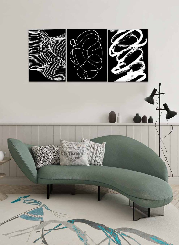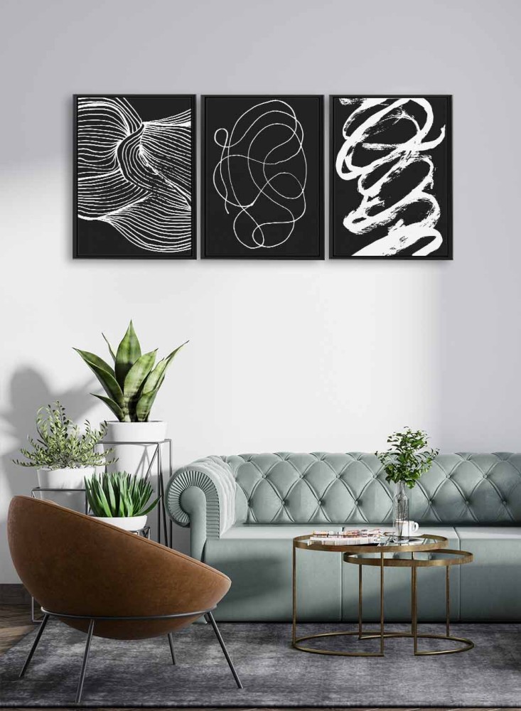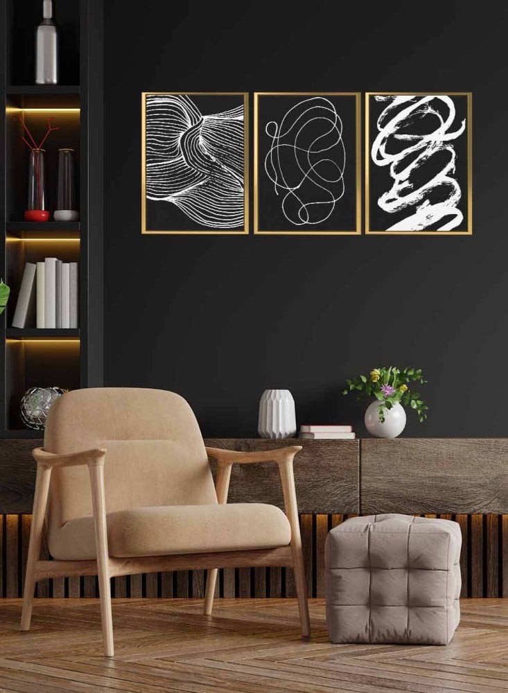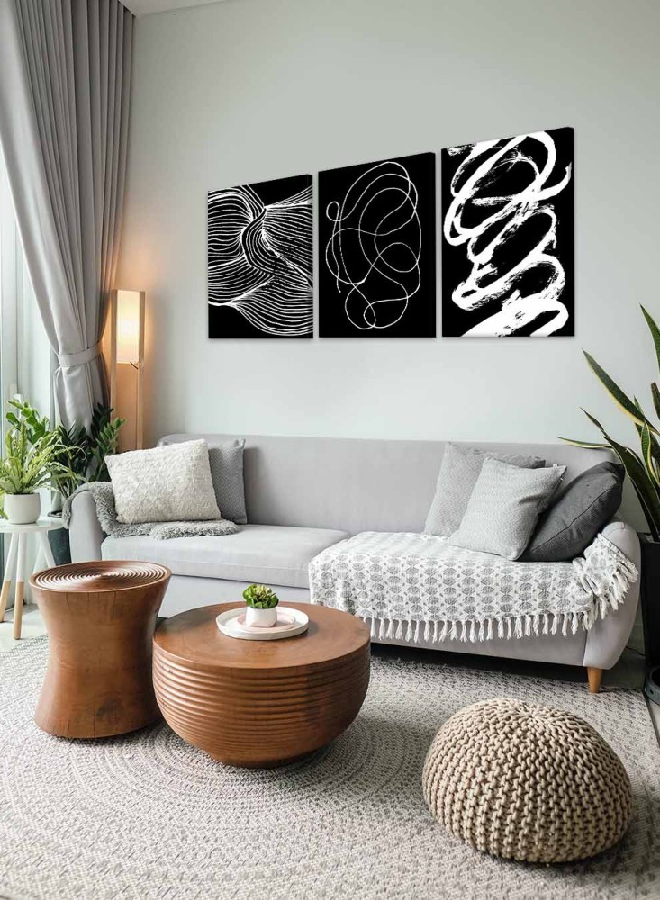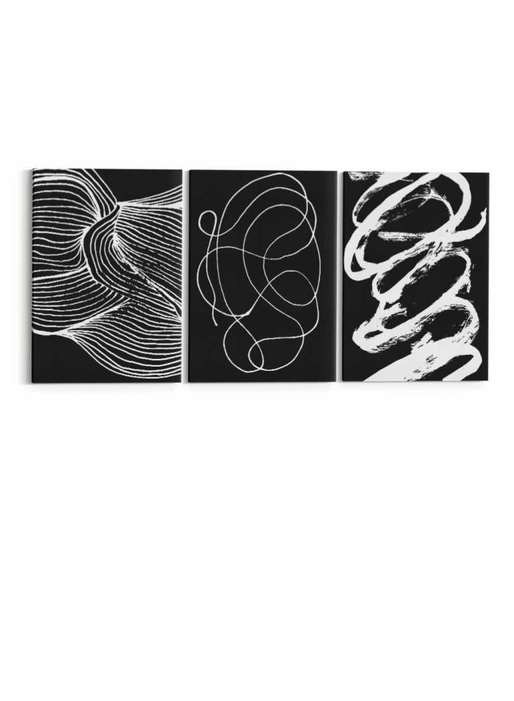 طقم من ٣ لوحات كانفاس على إطار خشبي بتصميم فن تجريدي