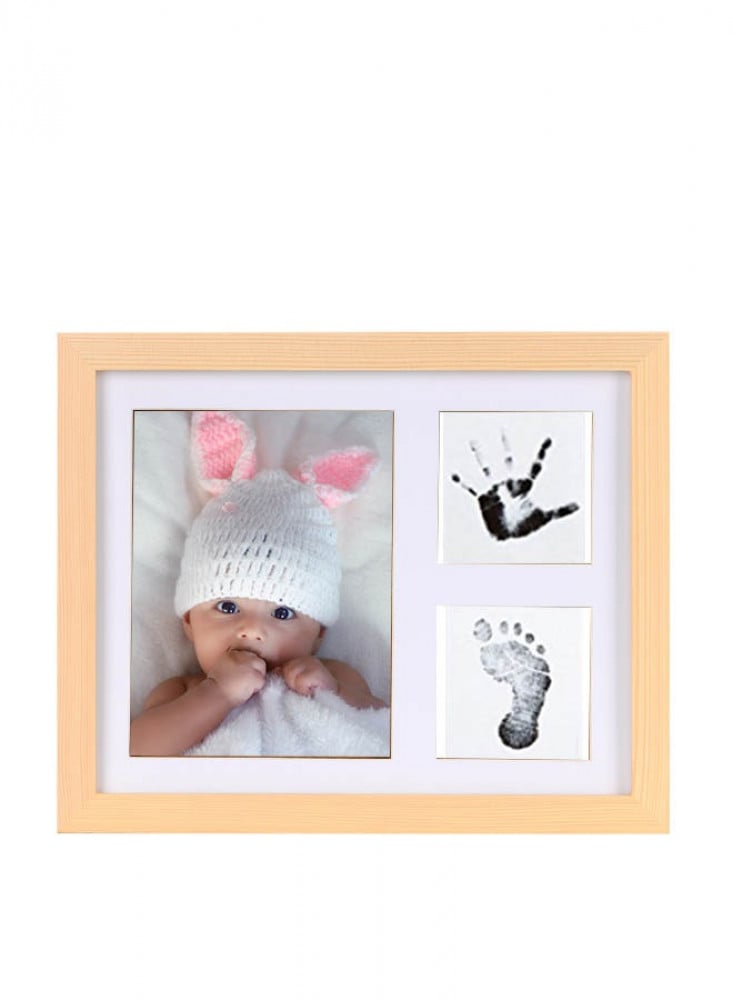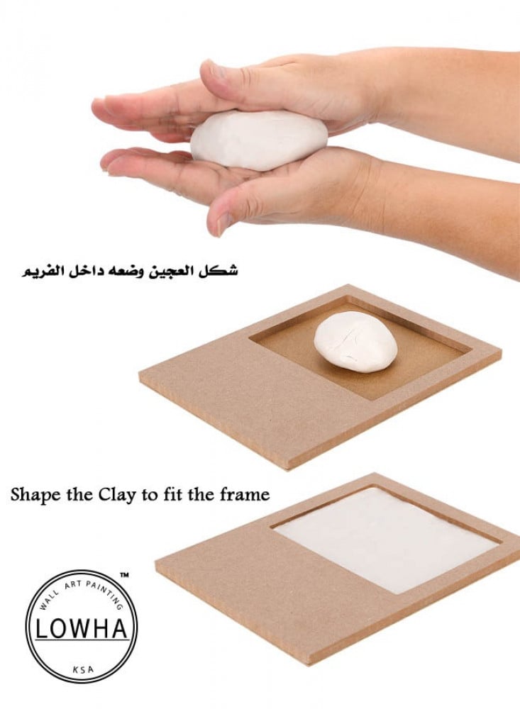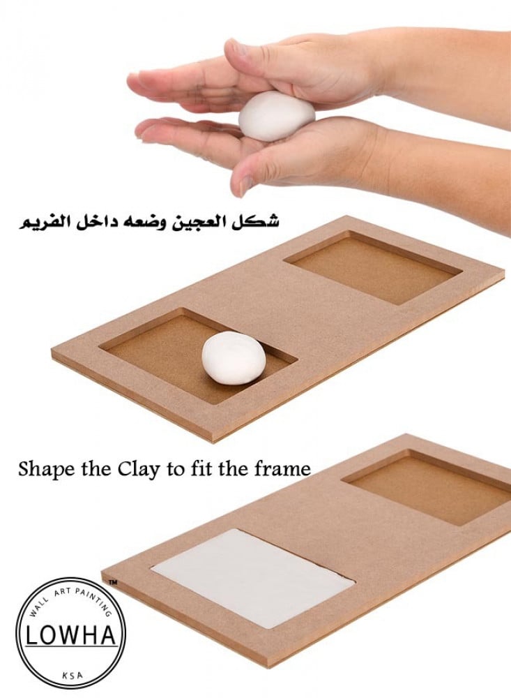 داخل الفريم عجينه يمكن تشكيلها ووضع بصمة الطفل عليها.
