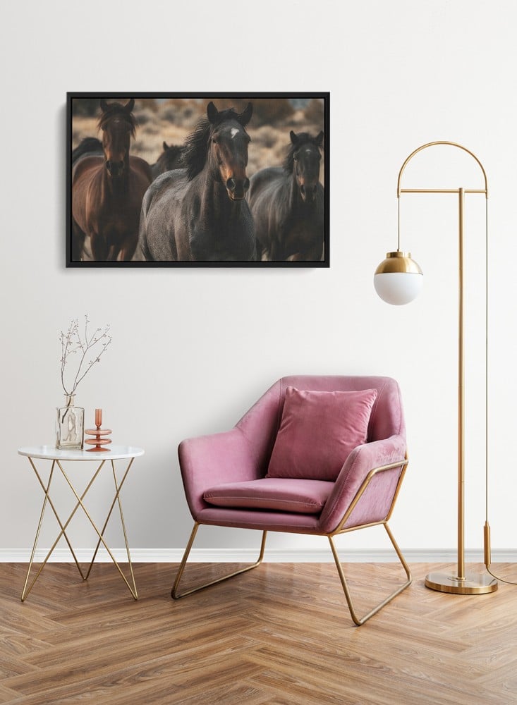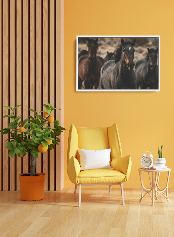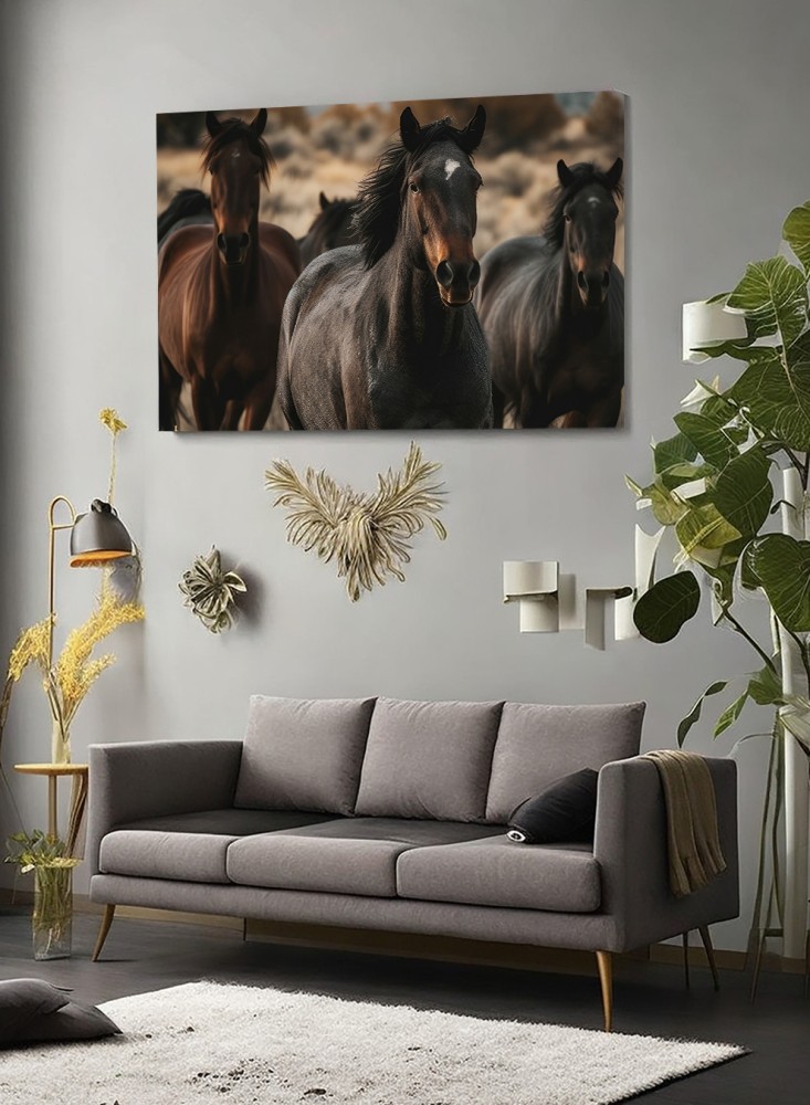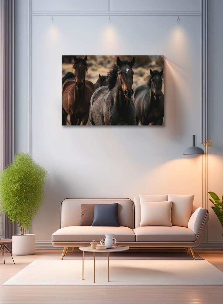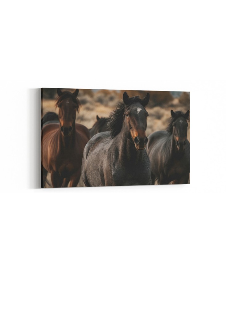 لوحة كانفاس على إطار خشبي بتصميم قطيع من الخيل الجامح