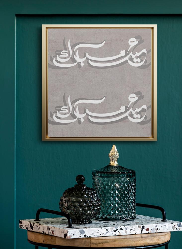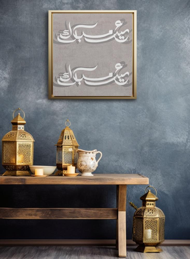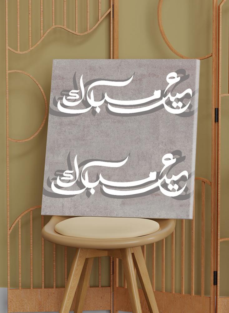 لوحة كانفاس على إطار خشبي بتصميم عيد مبارك
