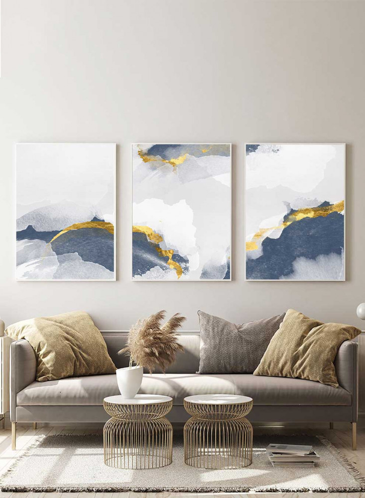 طقم من 3 لوحات كانفاس على إطار خشبي، تصميم فن زيتي فاتح، للمنزل، غرفة المعيشة، المكتب، الديكور