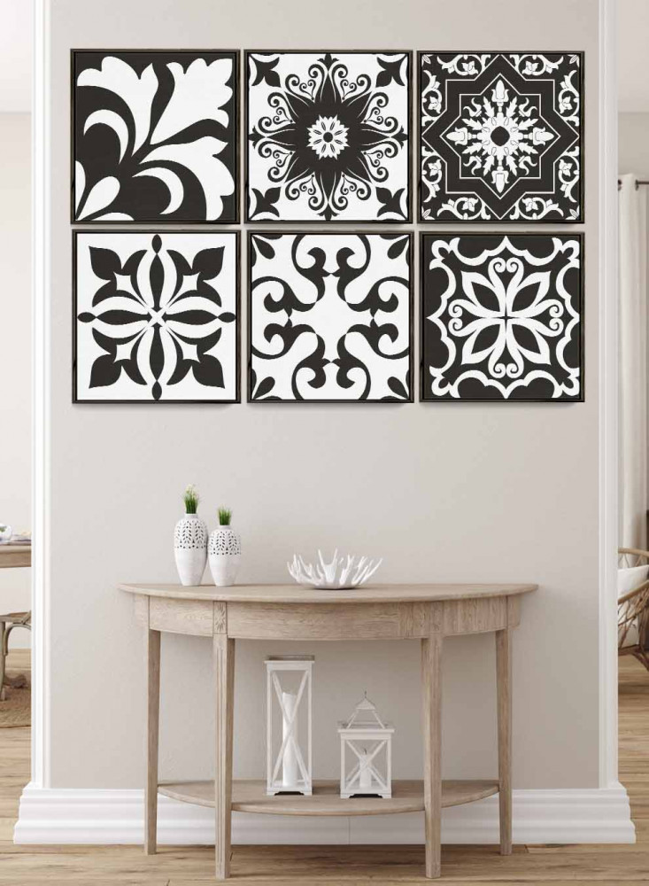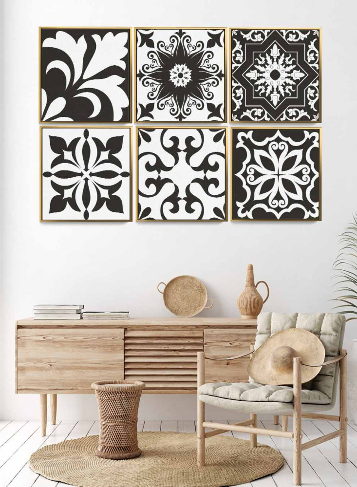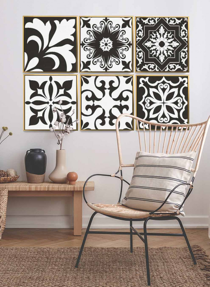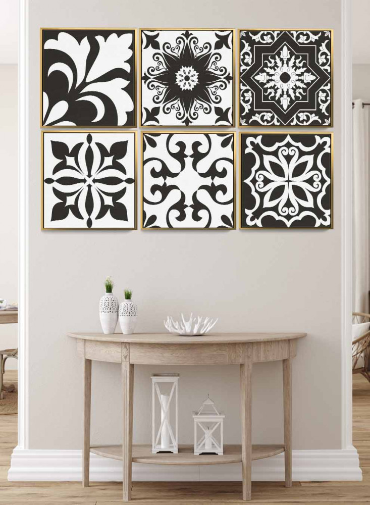 طقم من ٦ لوحات كانفاس مربع على إطار خشبي، تصميم اشكال تقليدية، للمنزل، غرفة المعيشة، المكتب، الديكور
