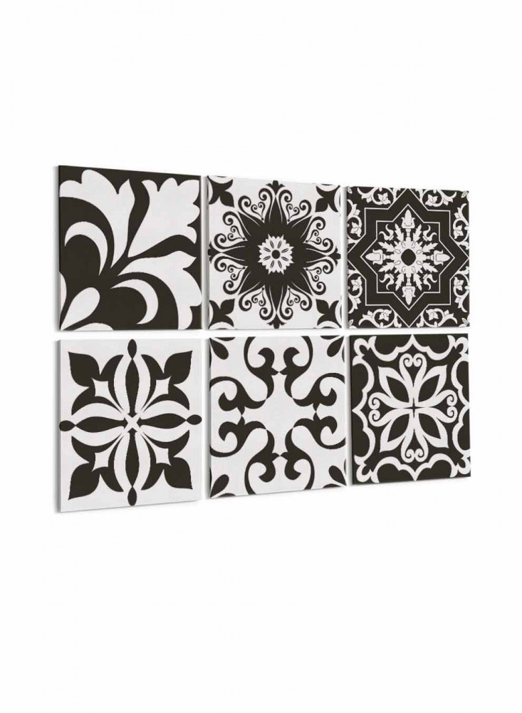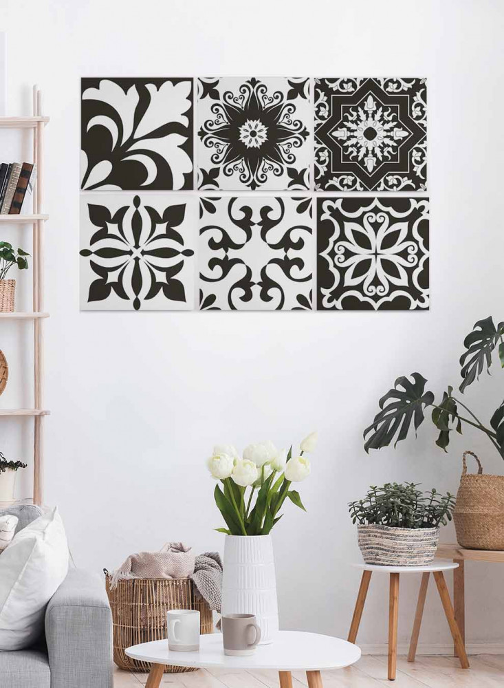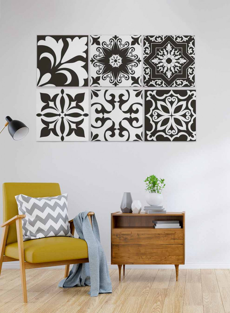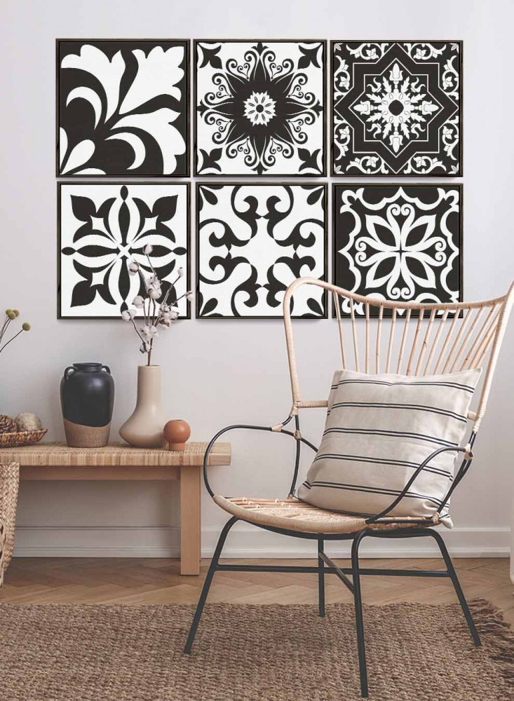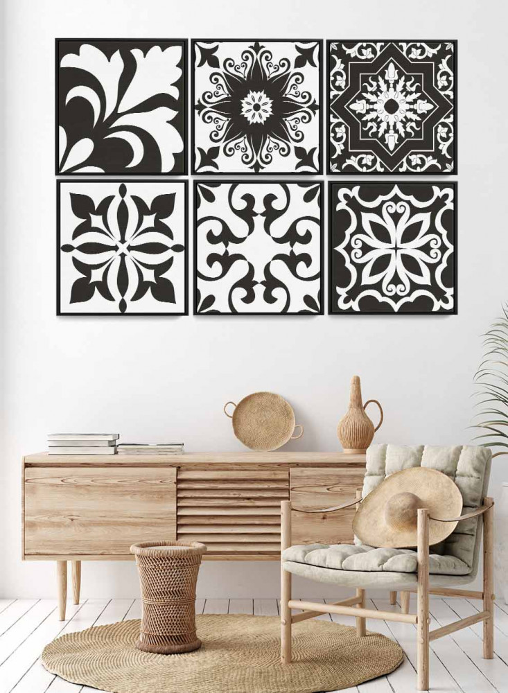 طقم من ٦ لوحات كانفاس مربع على إطار خشبي، تصميم اشكال تقليدية، للمنزل، غرفة المعيشة، المكتب، الديكور
