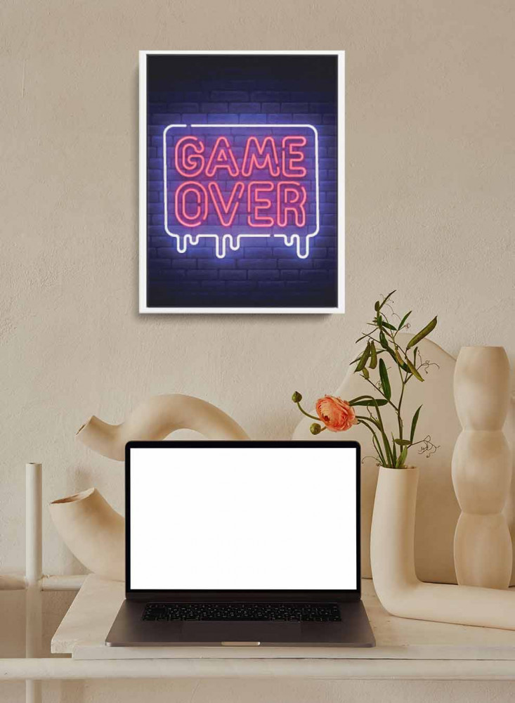 لوحة كانفاس على إطار خشبي للألعاب، تصميم انتهت اللعبة، للمنزل، غرفة المعيشة، المكتب، الديكور