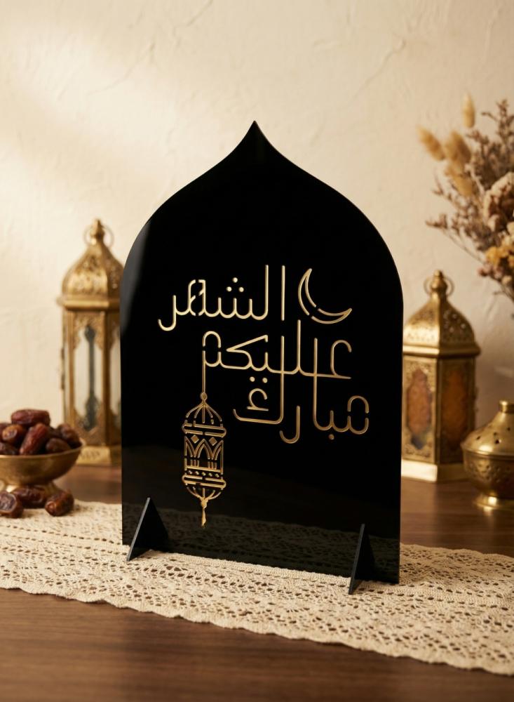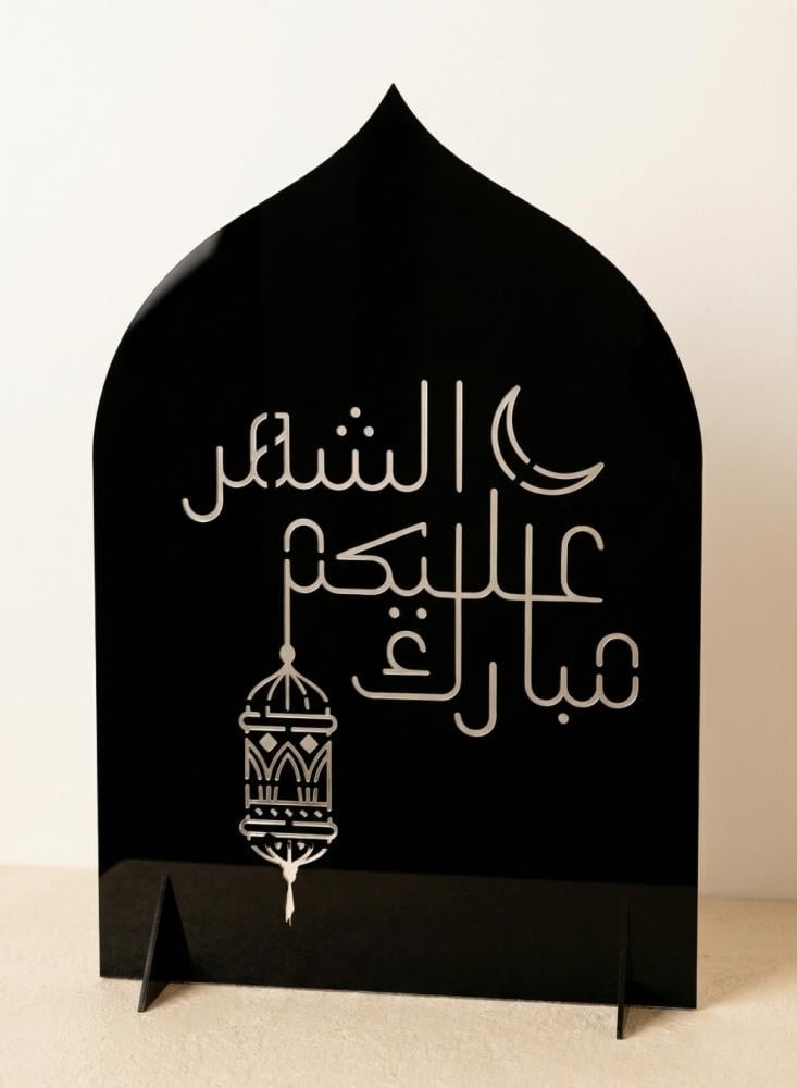 احتفل بأجواء شهر رمضان المبارك مع هذا الستاند الزخرفي المصنوع من الأكريليك، والمصمم بعناية ليضفي لمسة من الجمال والروحانية خلال الشهر الفضيل. يتميز التصميم بعبارة مبارك عليكم الشهر مع فانوس رمضان، ليعكس روحًا احتفالية مستوحاة من ليالي رمضان. صُنع الستاند من أكريليك أسود بسُمك ٣ مم بتقنية الليزر الاحترافية عالية الدقة. يبلغ مقاس الستاند ٢٧×٤٠ سم، مما يجعله مناسبًا للعرض على الطاولات أو الأرفف أو زوايا الديكور. صُنع هذا المنتج بفخر في المملكة العربية السعودية.