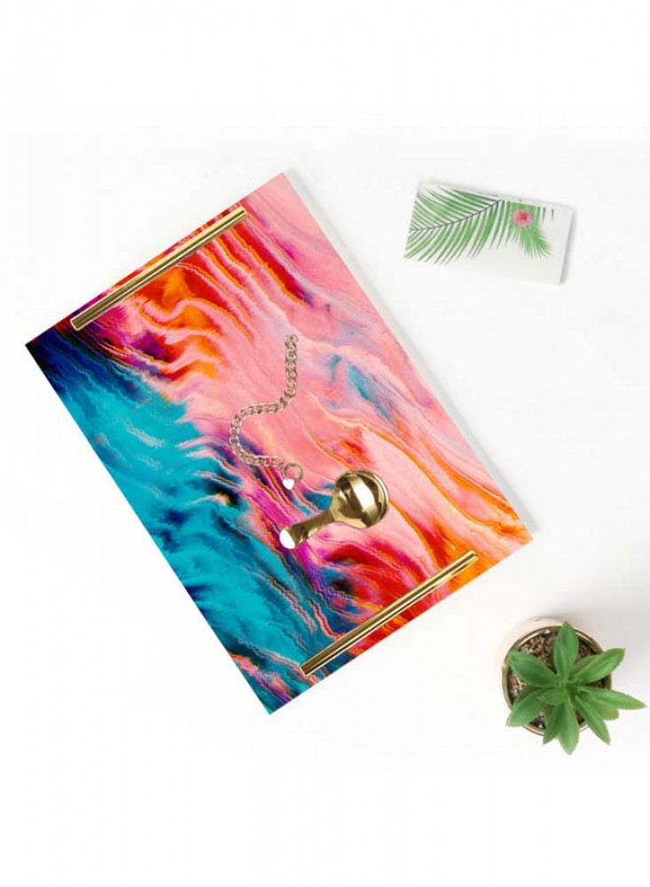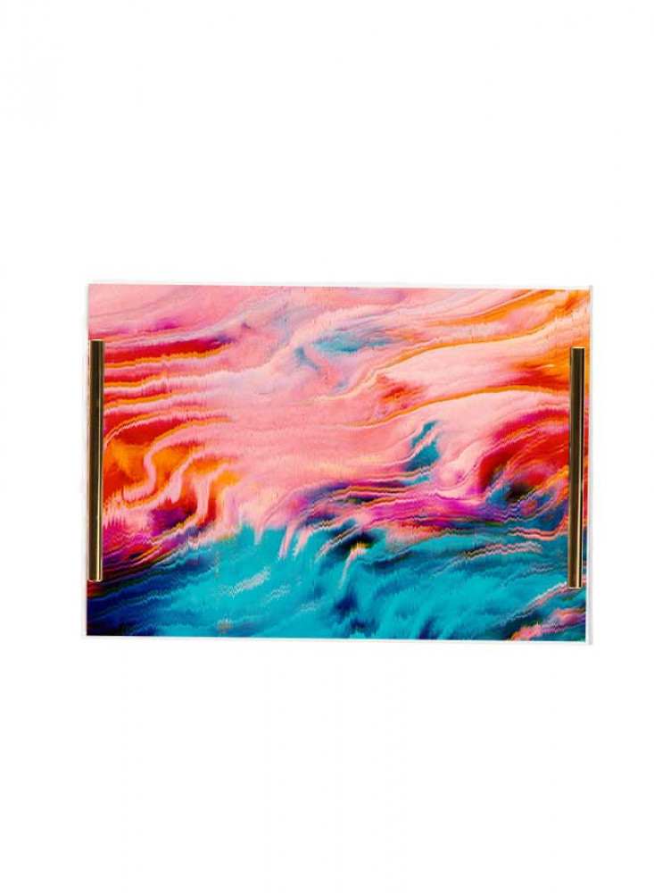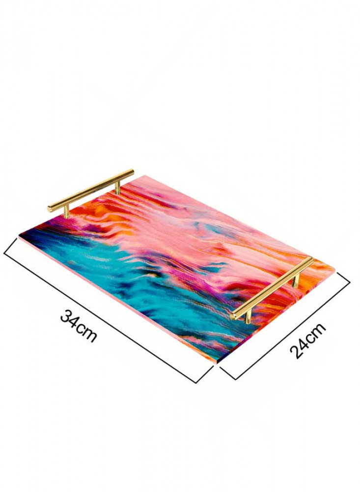 صينية تقديم مصنوعة من الأكريليك مزخرفة بتصميم بالألوان المائية بمقابض معدنية ذهبية اللون