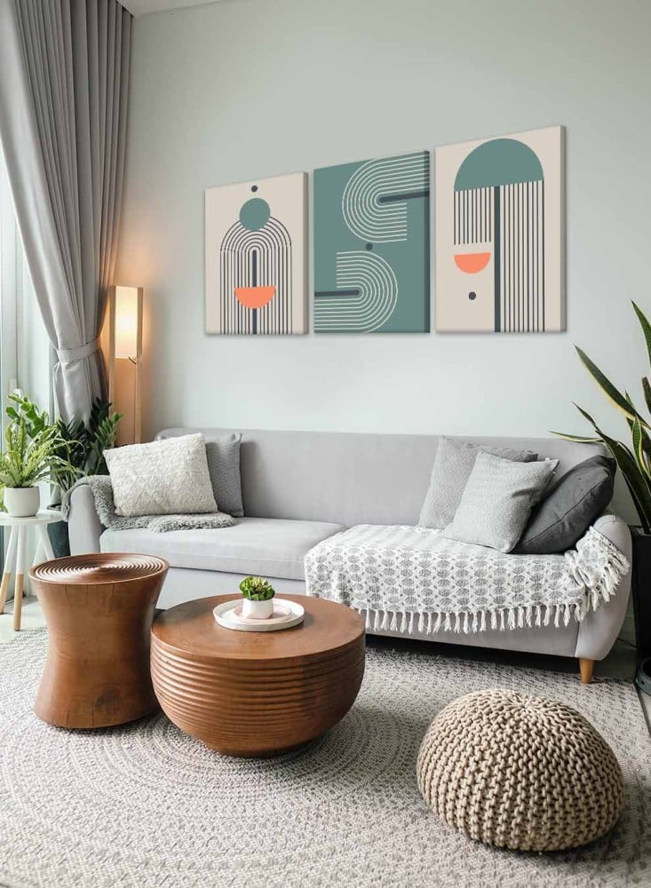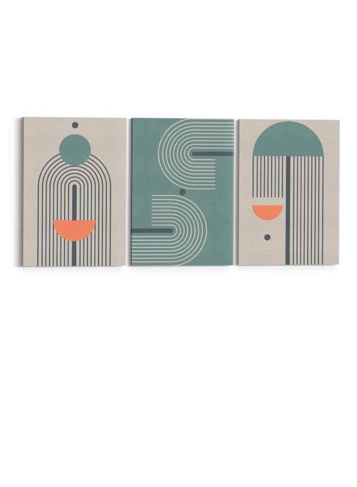 طقم من ٣ لوحات كانفاس على إطار خشبي بتصميم فن تجريدي خطوط ودوائر