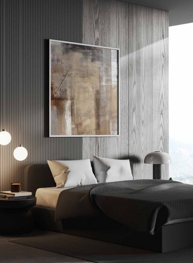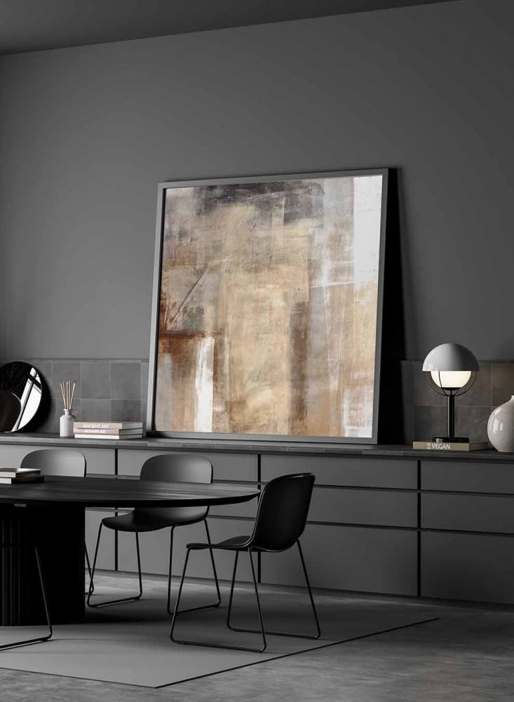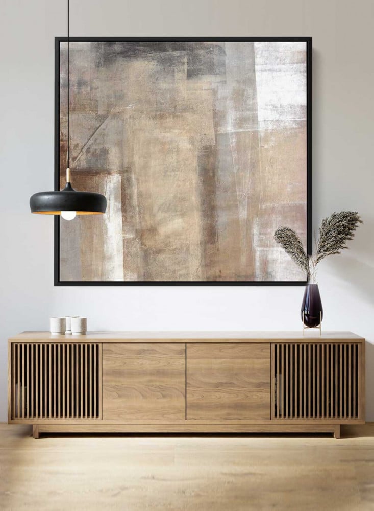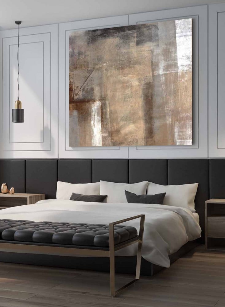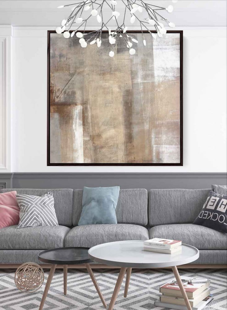 - تأتي اللوحة من تصميم فن تجريدي مثالي للمساحات الواسعة مثل غرف المعيشة وأيضًا المكاتب.