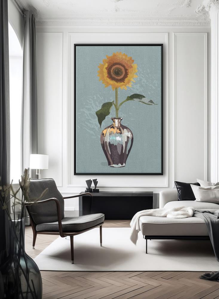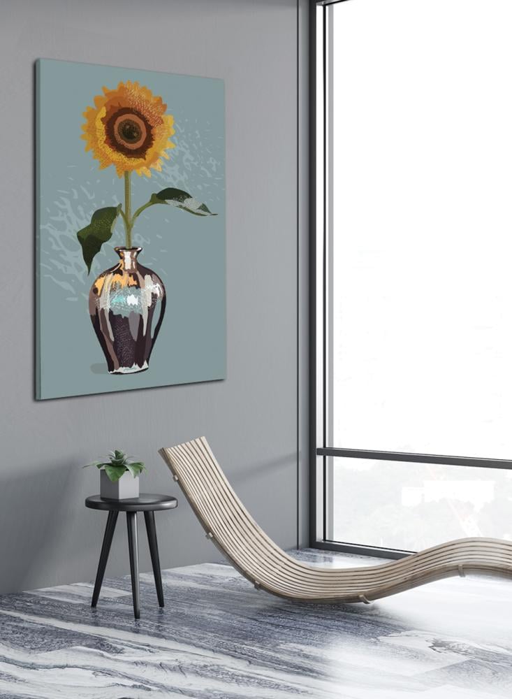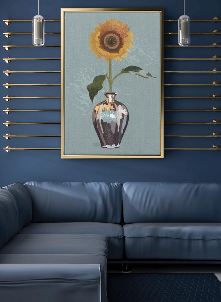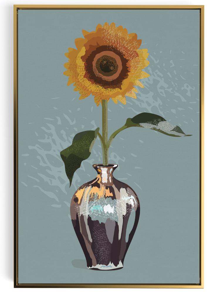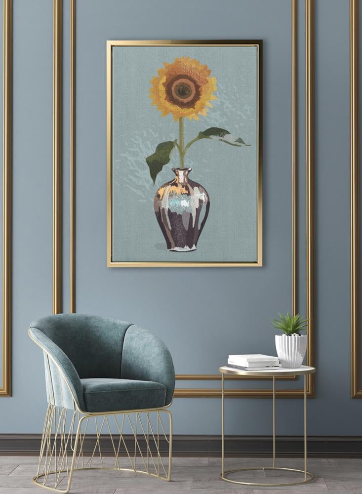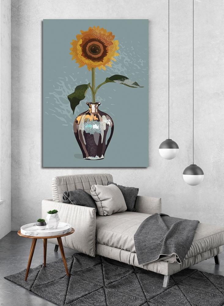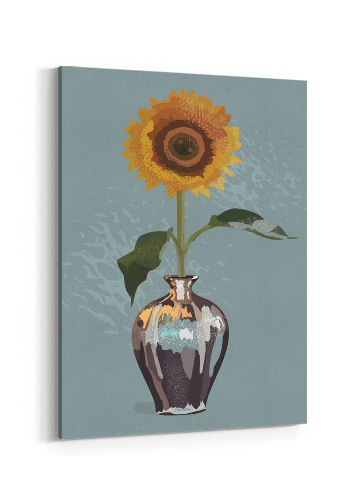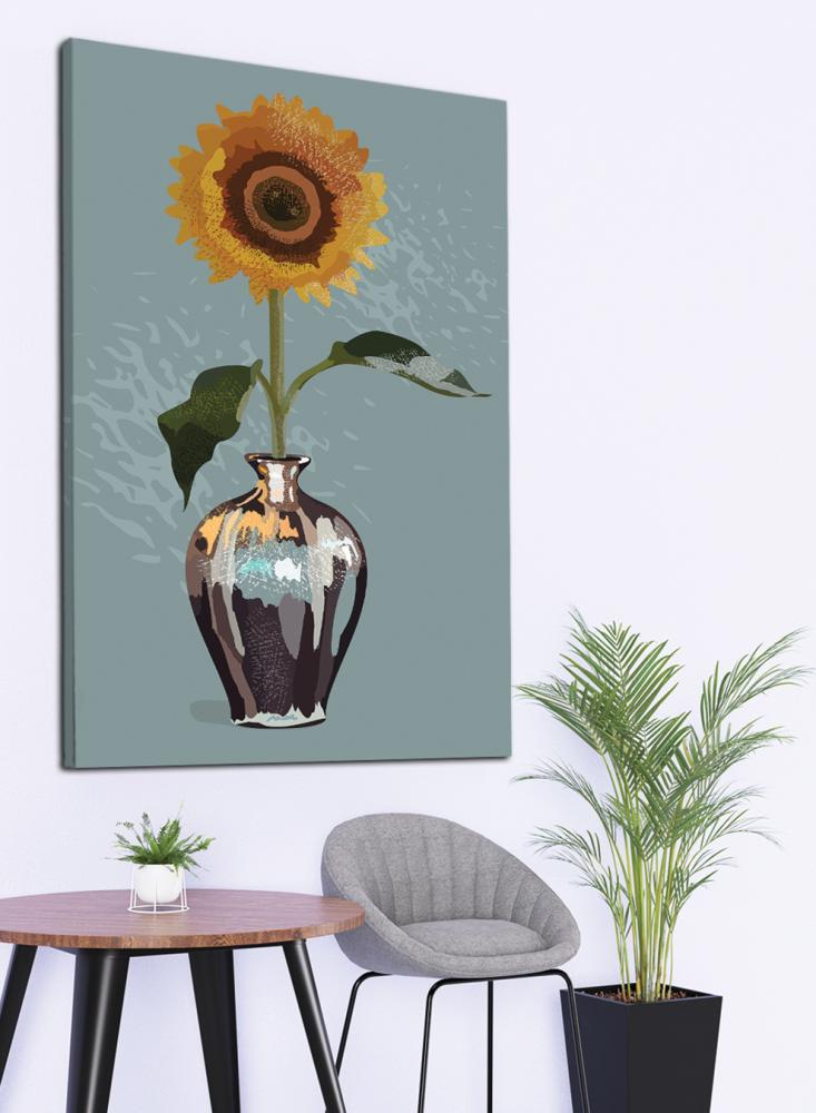لوحة كانفاس على إطار خشبي بتصميم زهرة عباد الشمس