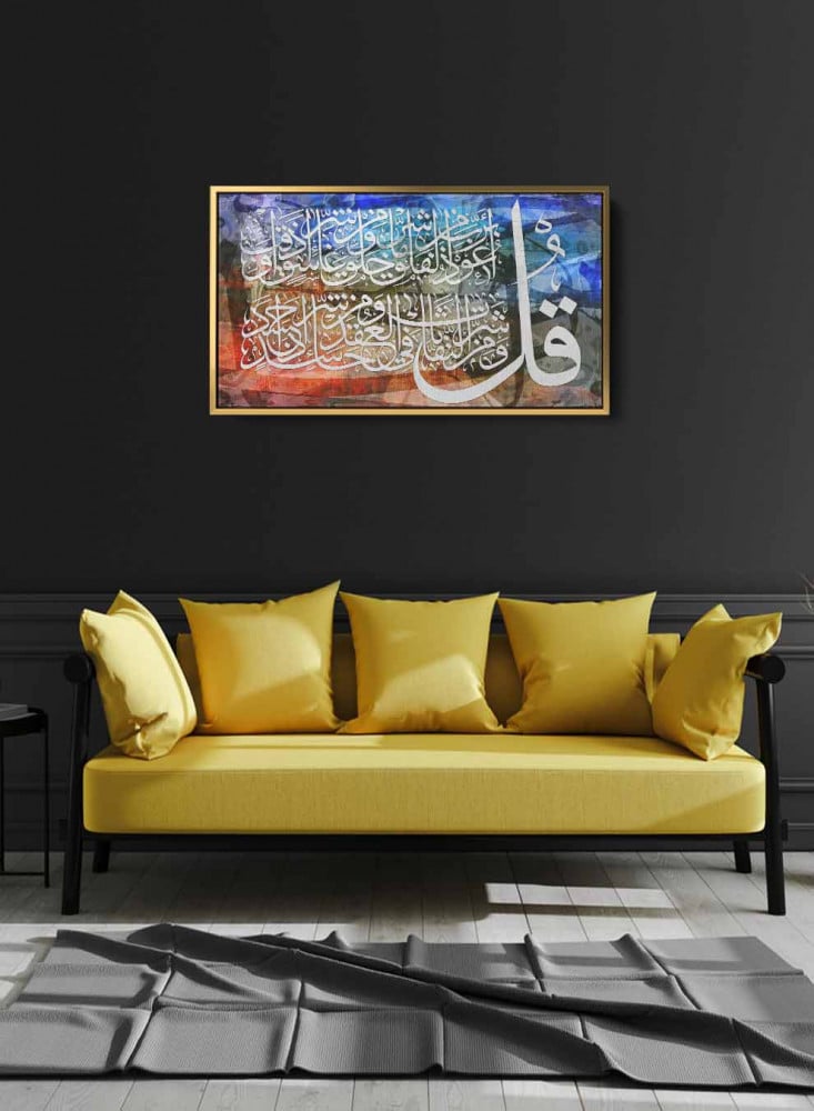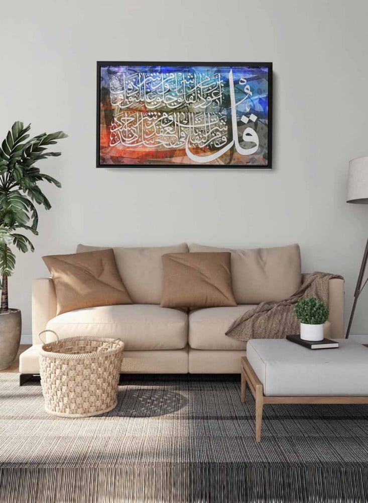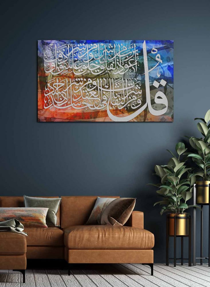 - تصميم إسلامي قرآن سورة الفلق تضفي مظهر جمالي وراقي إلى المكان.