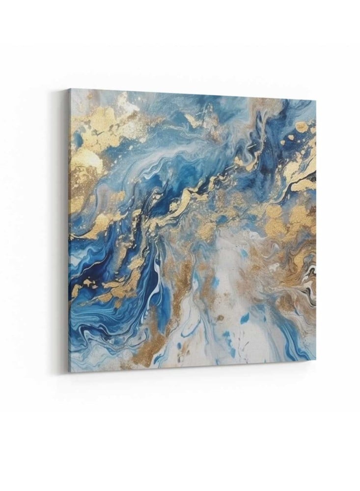 - لوحة كانفاس على إطار خشبي بتصميم درجات الازرق الرخامى.