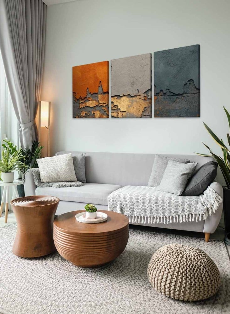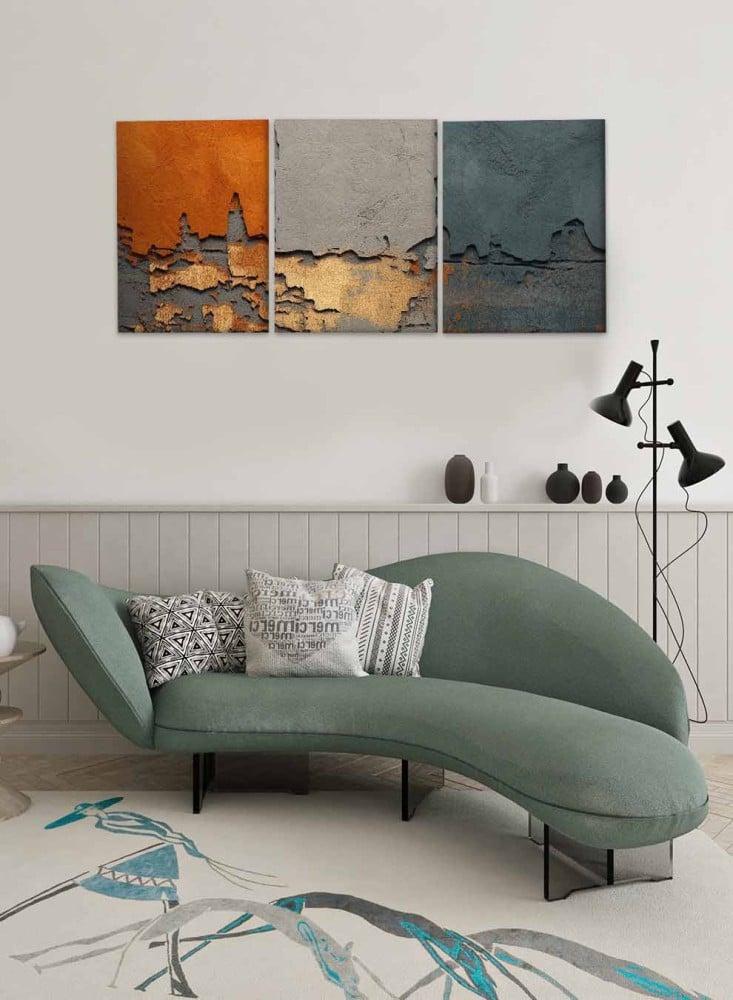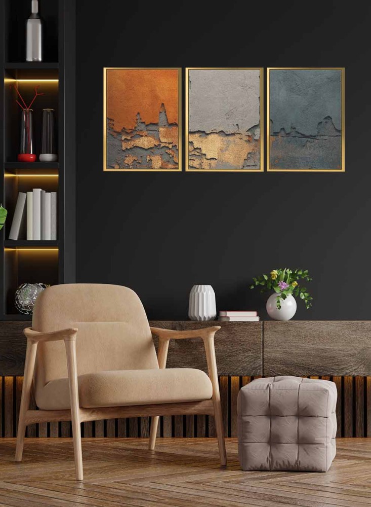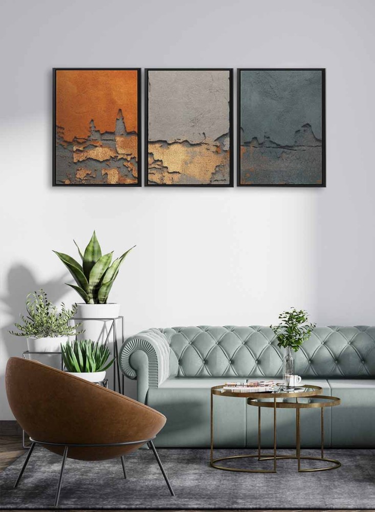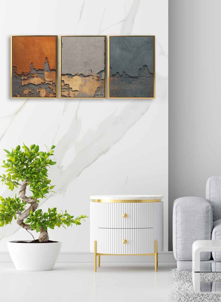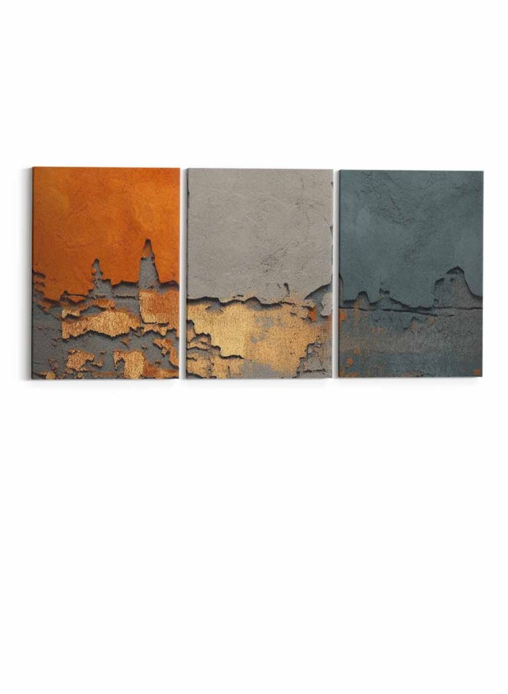 طقم من ٣ لوحات كانفاس على إطار خشبي بتصميم فن تجريدي شروخ ملونة