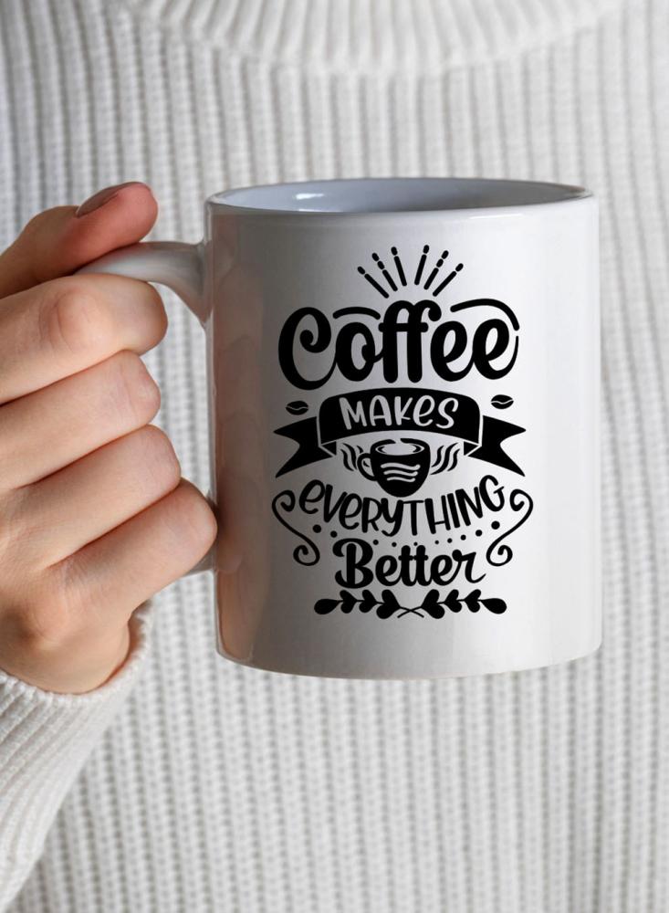 كوب ١١ أونصة من السيراميك بتصميم القهوة تجعل كل شيء افضل