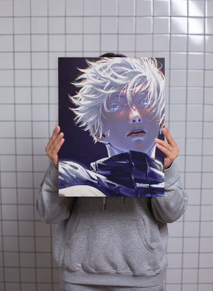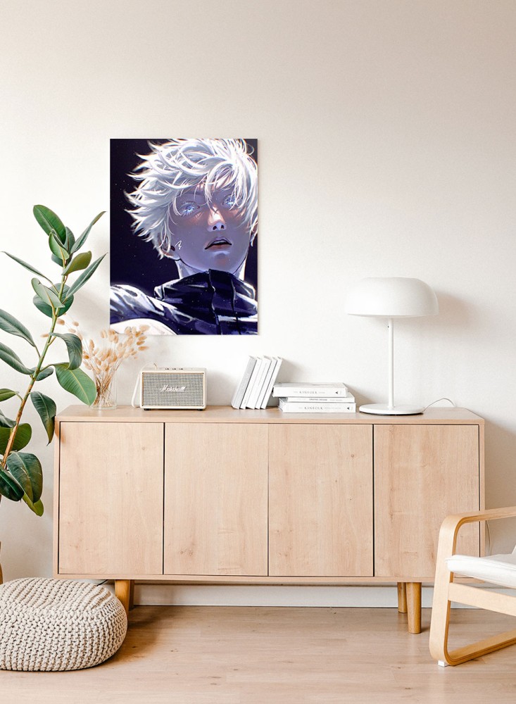 لوحة كانفاس على إطار خشبي بتصميم غوجو أنمي جوجوتسو كايسن