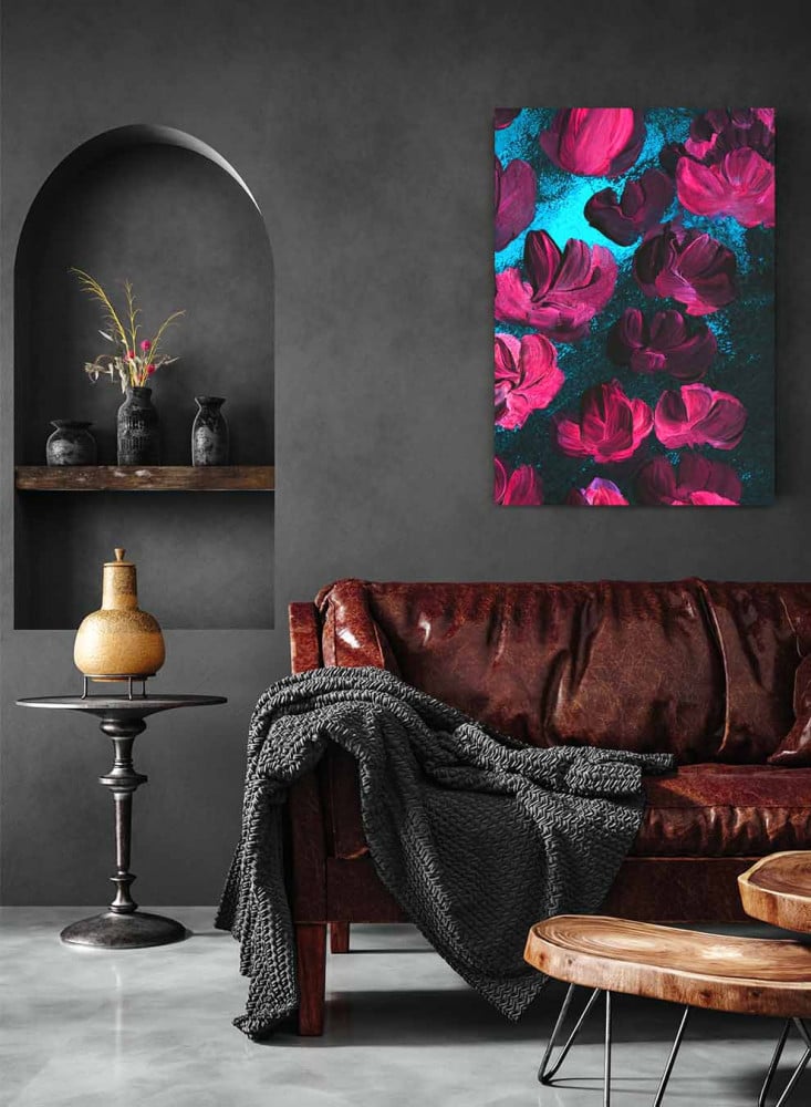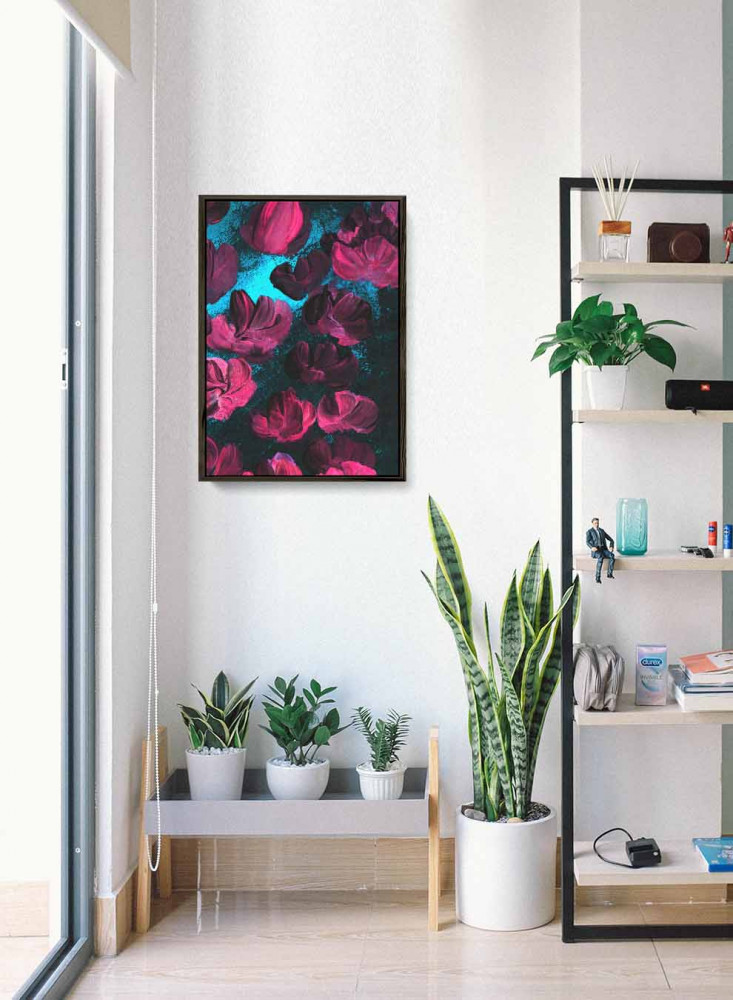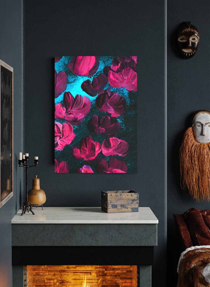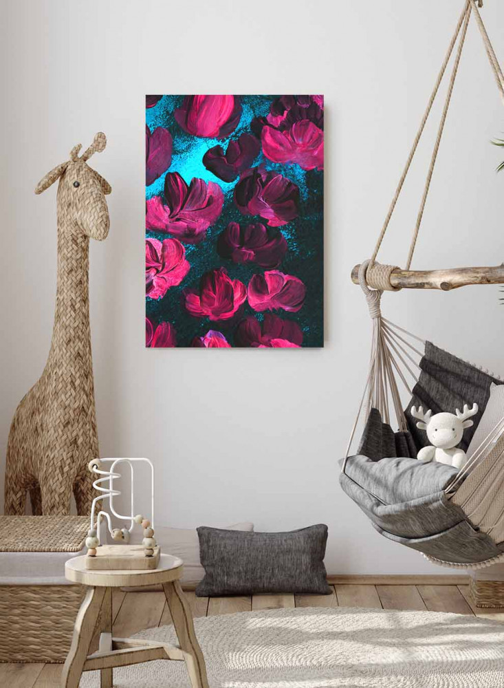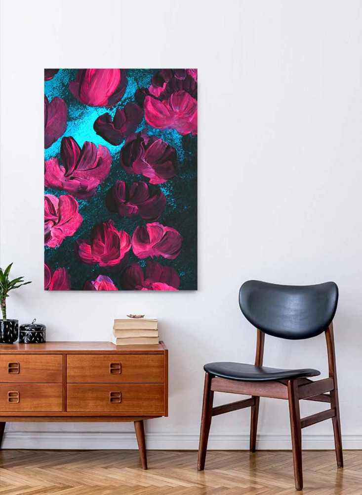 لوحة كانفاس على إطار خشبي، تصميم فن تجريدي لورود ملونة، للمنزل، غرفة المعيشة، المكتب، الديكور