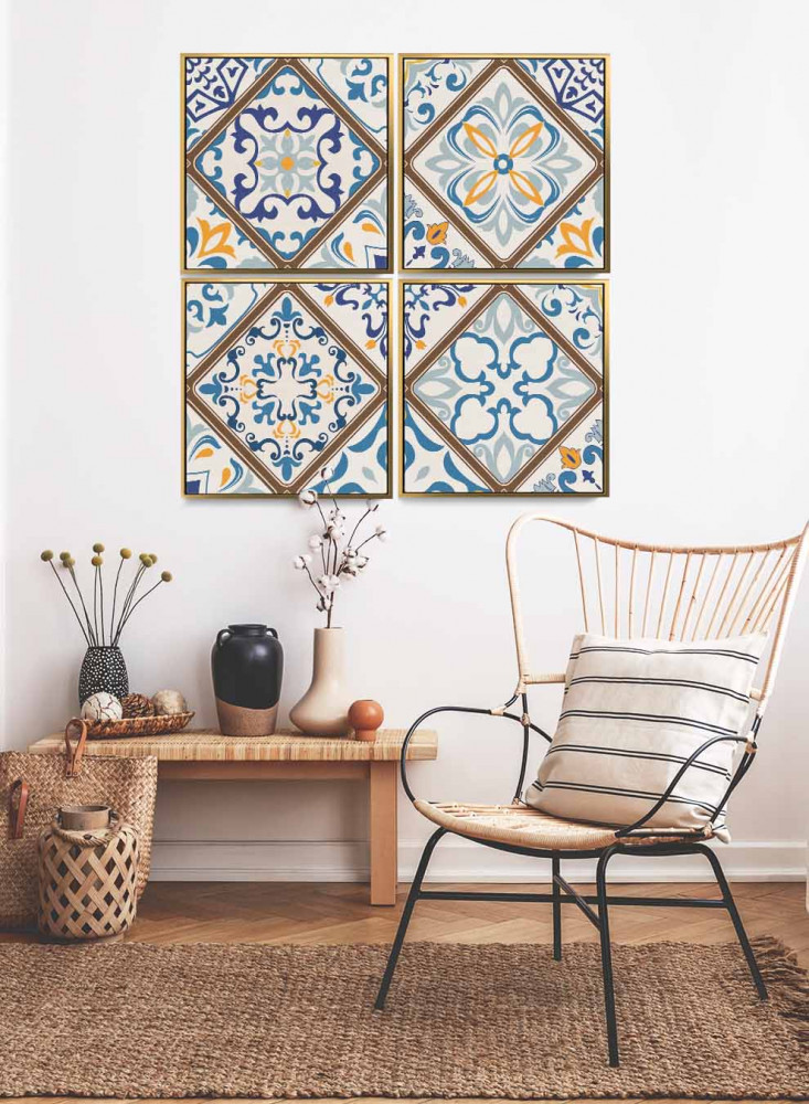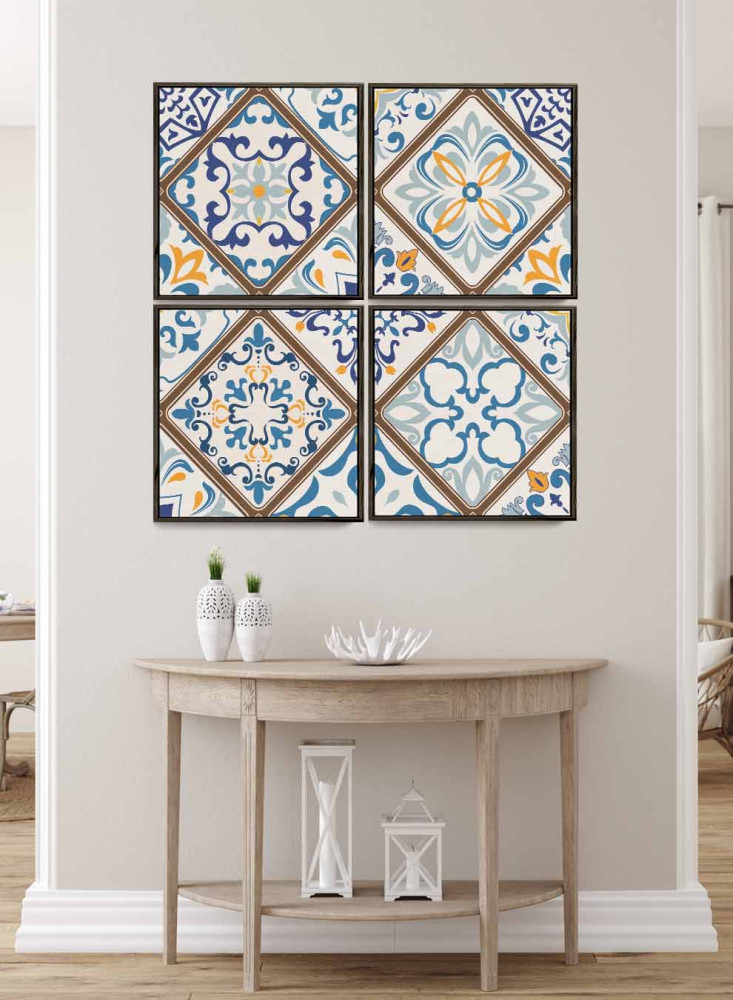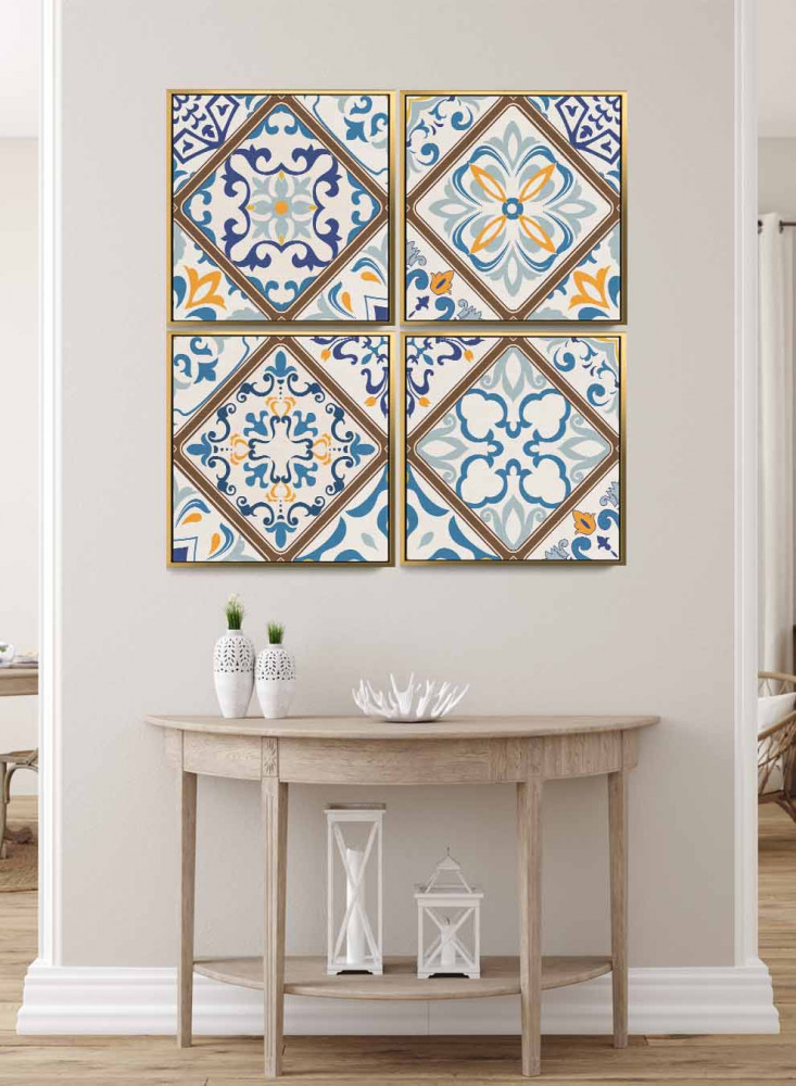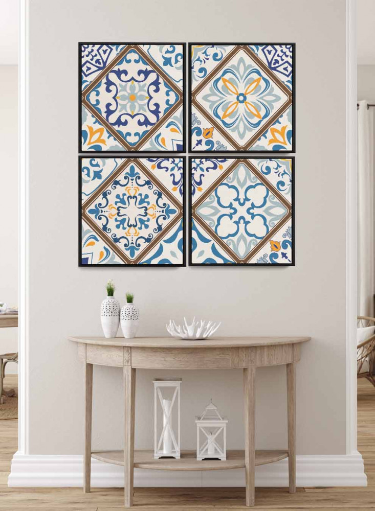 طقم من ٤ لوحات كانفاس مربع على إطار خشبي، تصميم منوع، للمنزل، غرفة المعيشة، المكتب، الديكور