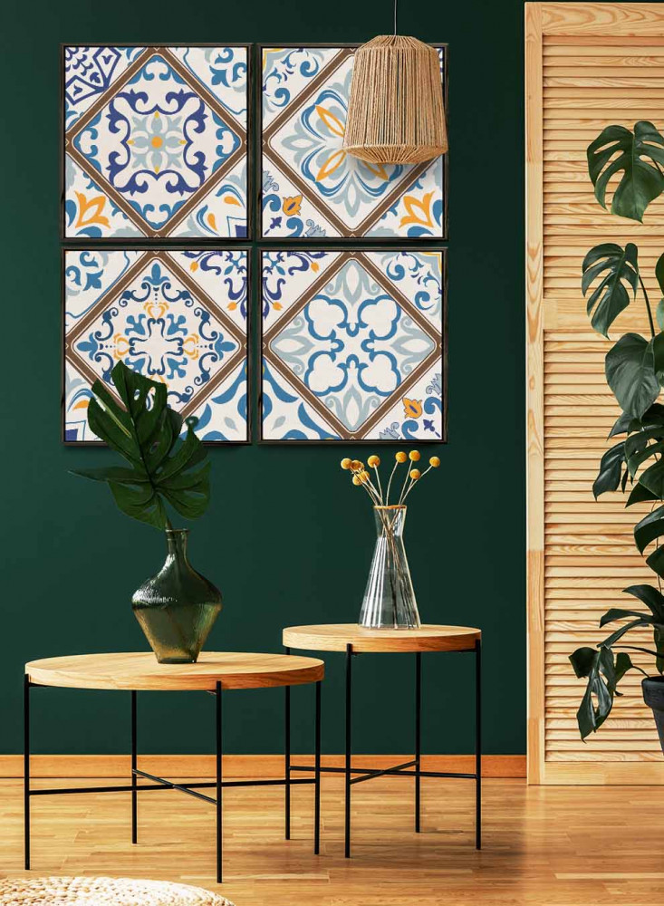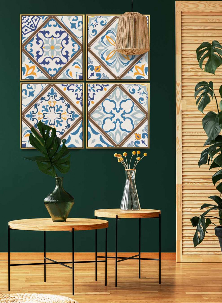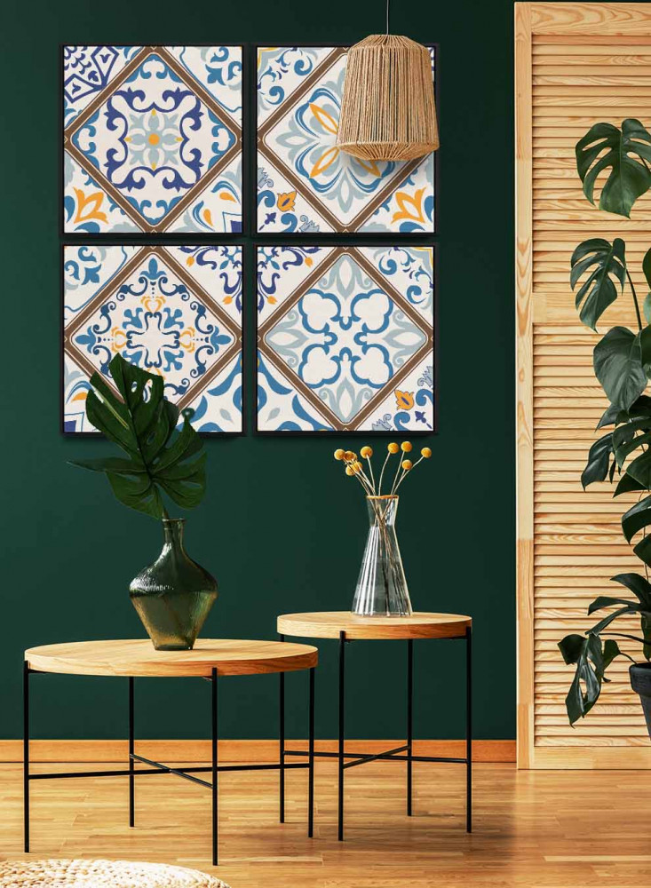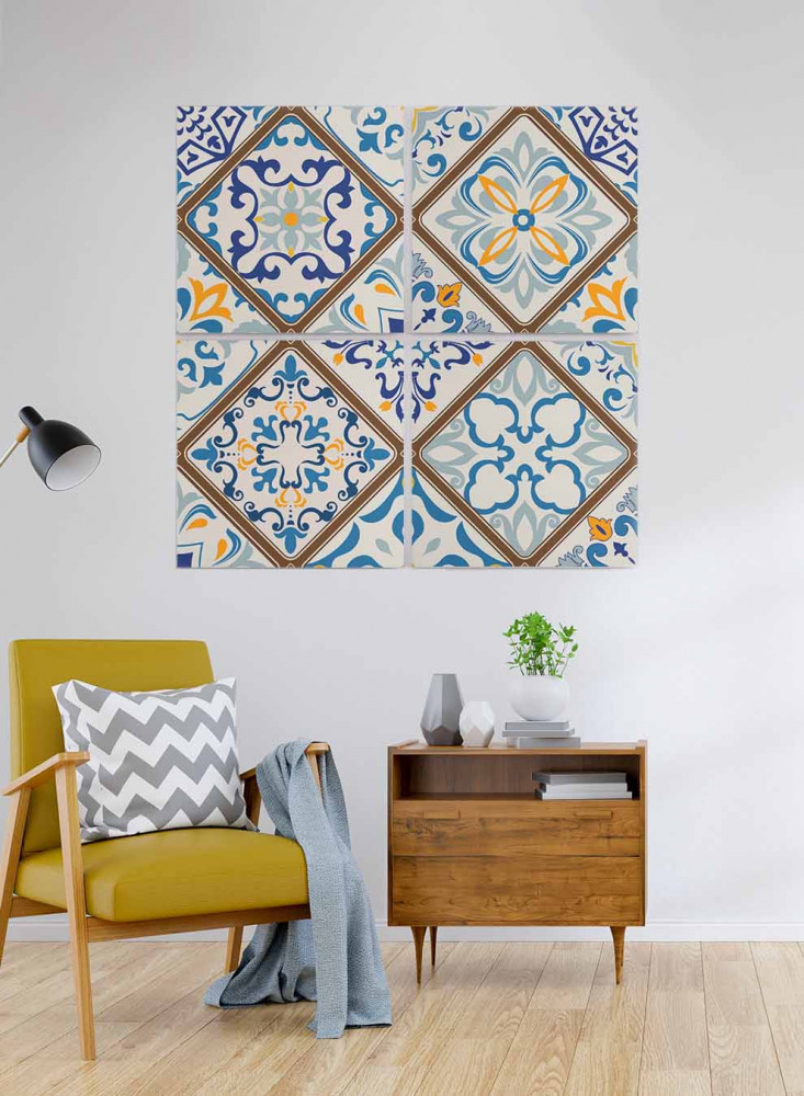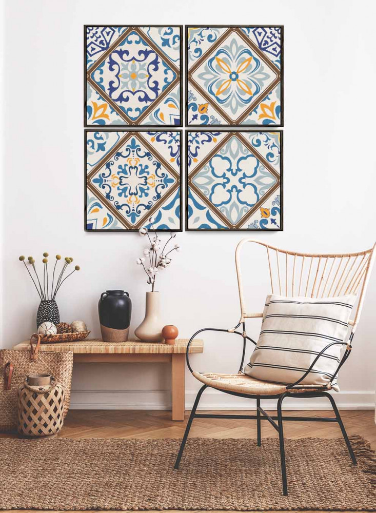 طقم من ٤ لوحات كانفاس مربع على إطار خشبي، تصميم منوع، للمنزل، غرفة المعيشة، المكتب، الديكور