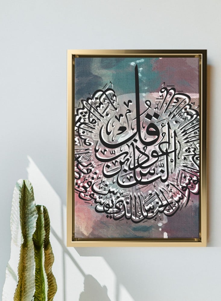 الحصول على لوحات قرآنية جدارية أمر يهم كل من يجهز منزله أو ينتقل إلى منزل جديد، كما أنها مناسبة لمن يرغب في التجديد والحصول على لوحة قرآنية تعطي شعور بالراحة والهدوء وتحسن الحالة النفسية وتشجع على قراءة القرآن الكريم. نرشح لك هذه اللوحة الرائعة من متجر لوحة بتصميم إسلامي سورة الناس.