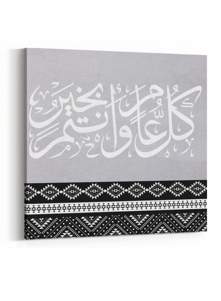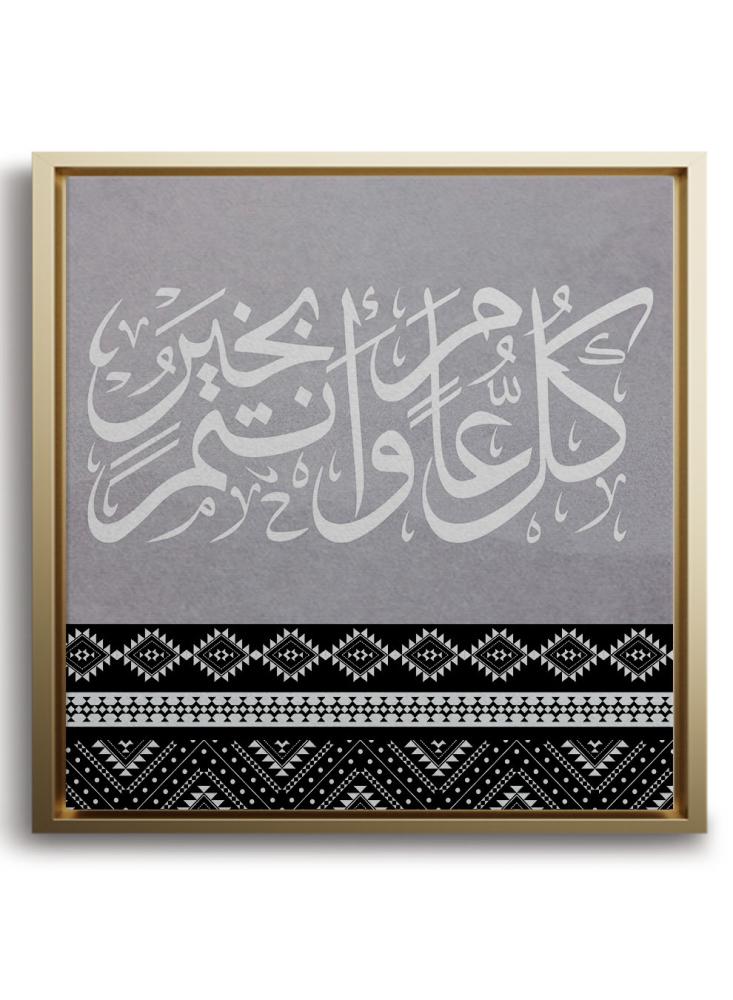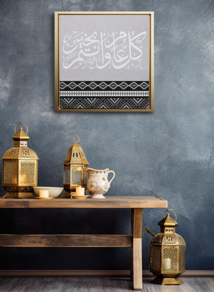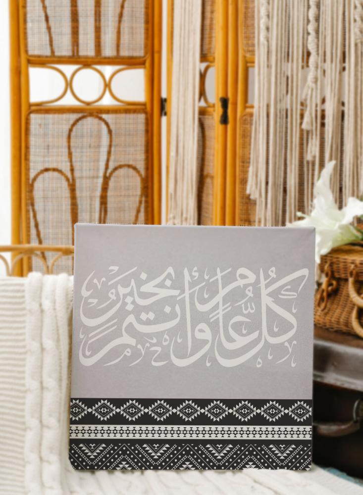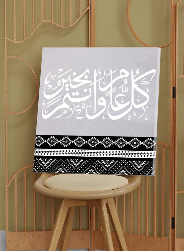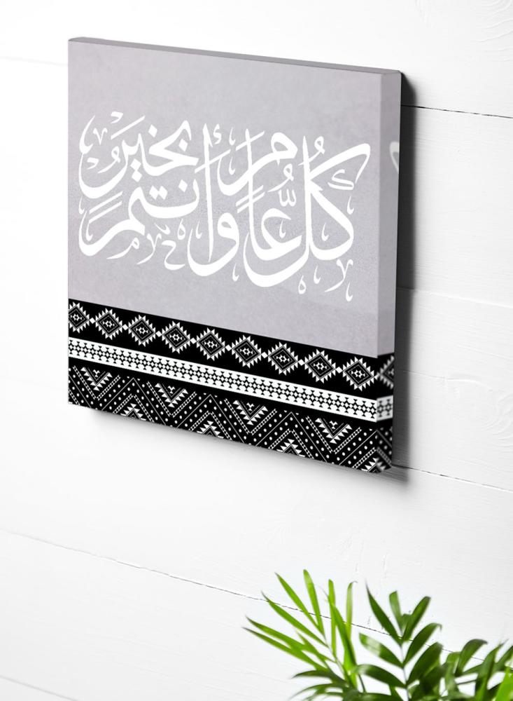 لوحة كانفاس على إطار خشبي للاحتفال برمضان والعيد بتصميم كل عام وأنتم بخير