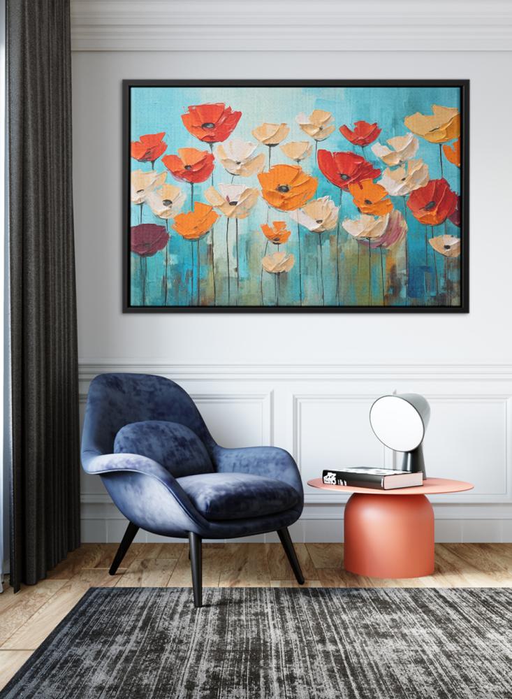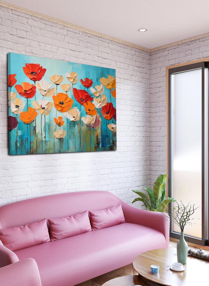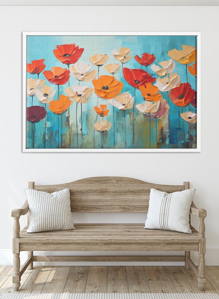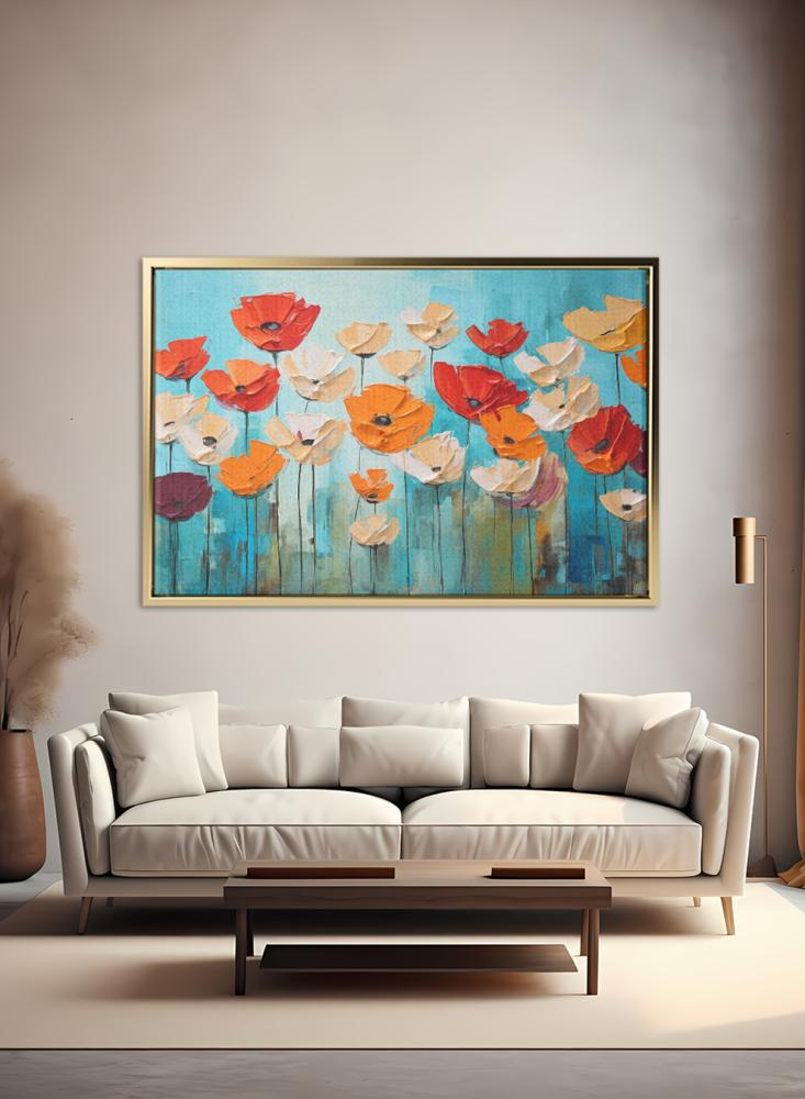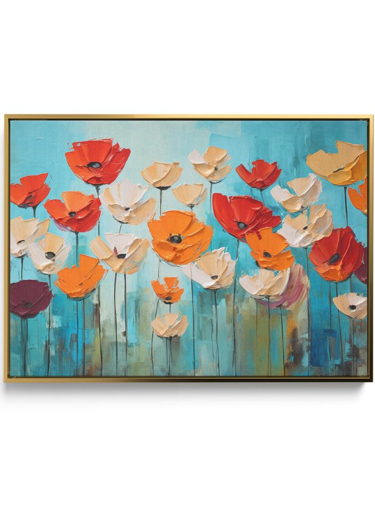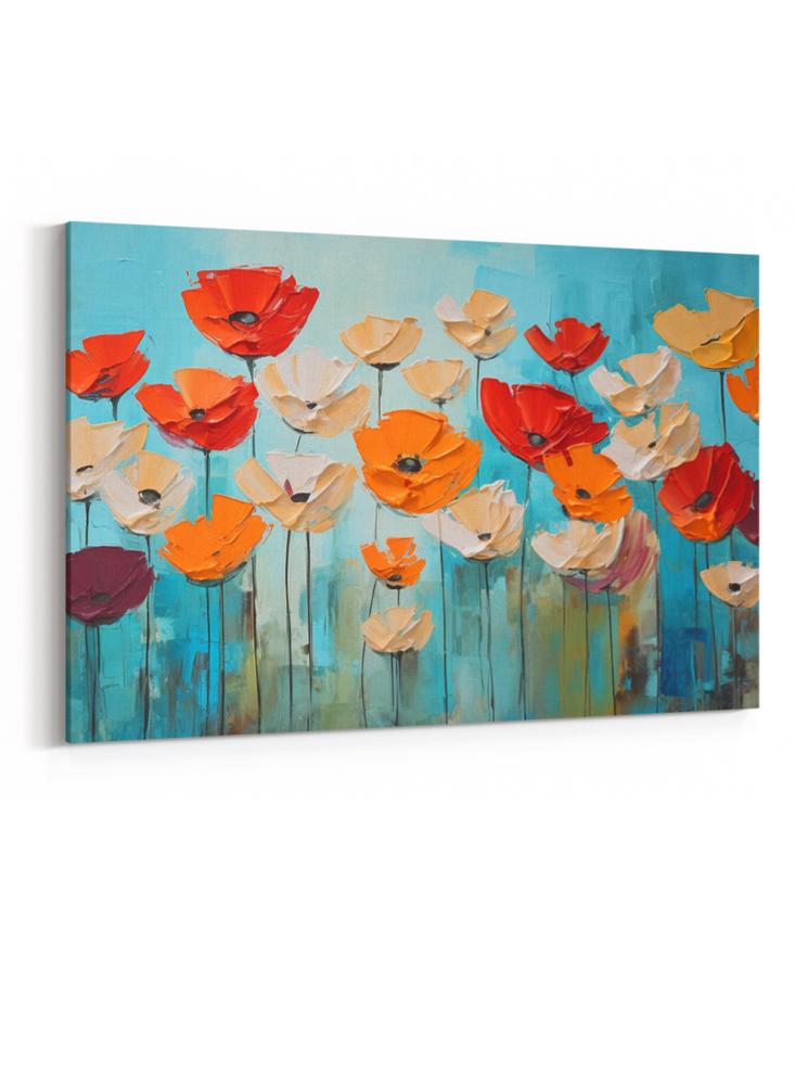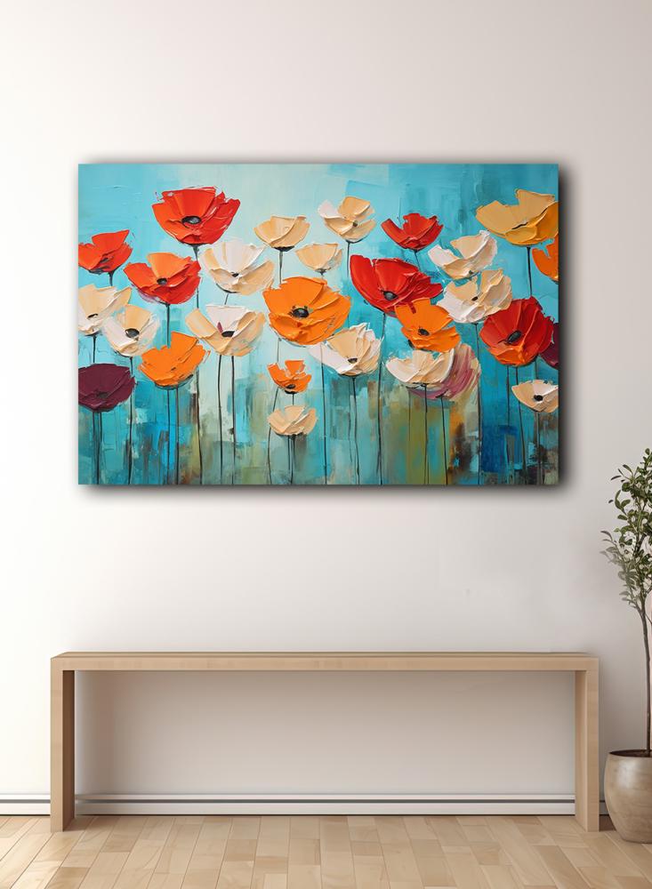 لوحة كانفاس على إطار خشبي بتصميم زهور ملونة