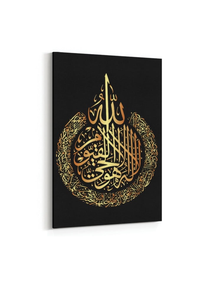 - آية الكرسي مكتوبة باللون الذهبي المشرق الرائع والخلفية سوداء مما يجعل اللوحة تظهر بشكل جميل ومميز.