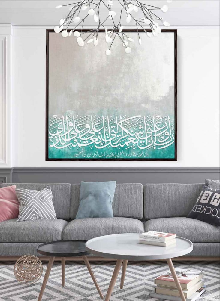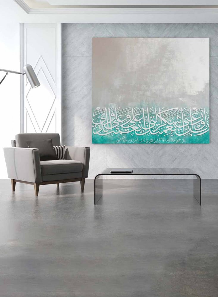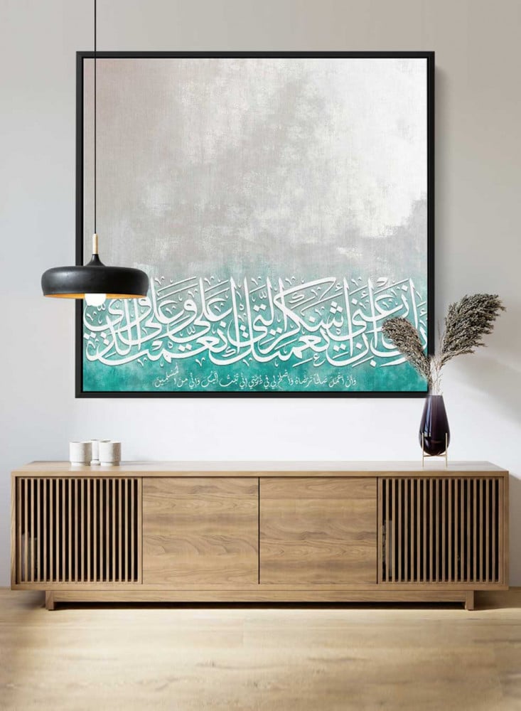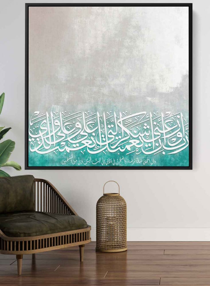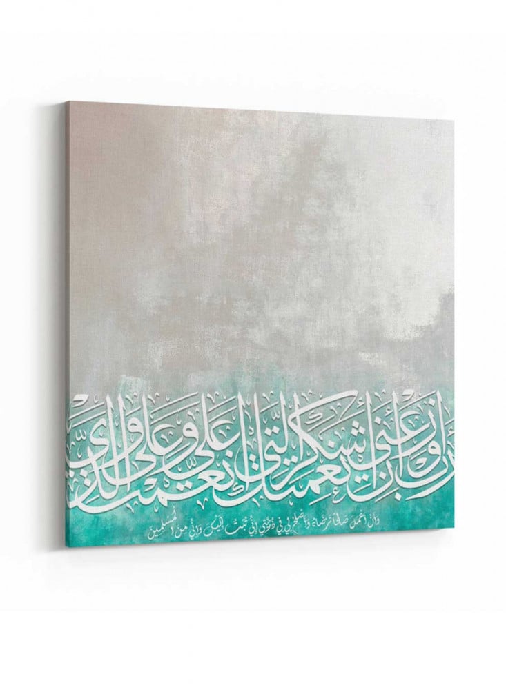 - لوحة كانفاس مربع على إطار خشبي، تصميم دعاء رب أوزعني أن أشكر نعمتك.