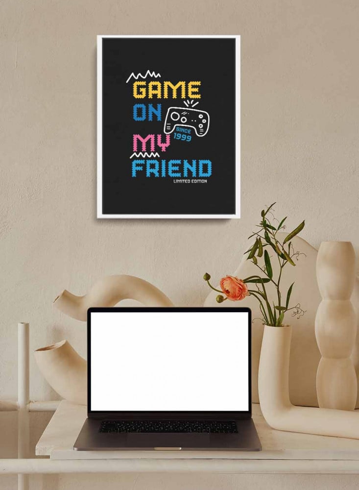 لوحة كانفاس على إطار خشبي للألعاب، تصميم بدأت اللعبة، للمنزل، غرفة المعيشة، المكتب، الديكور