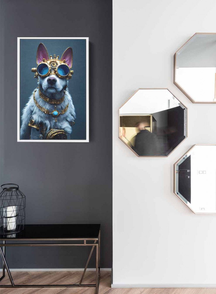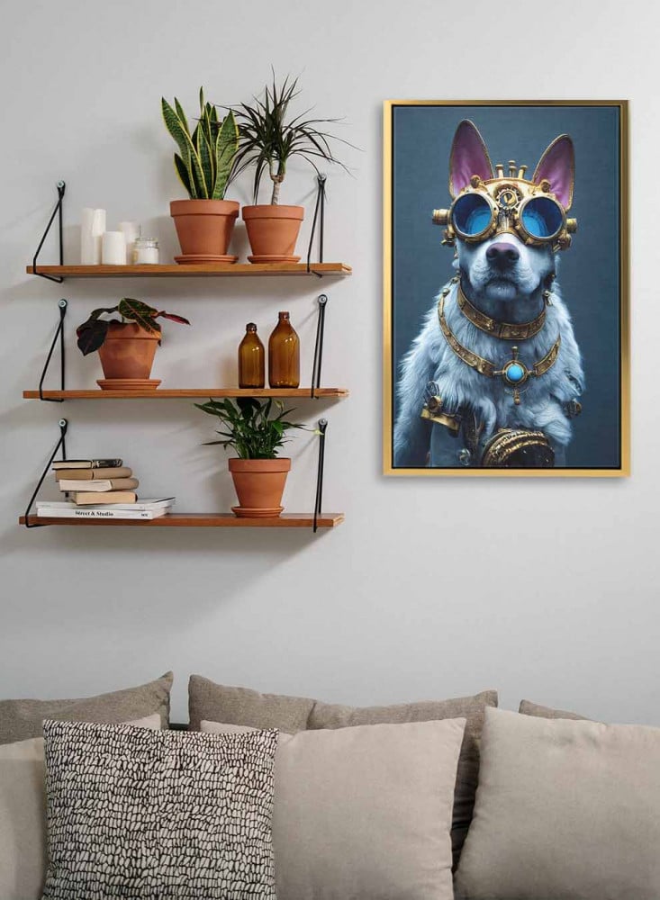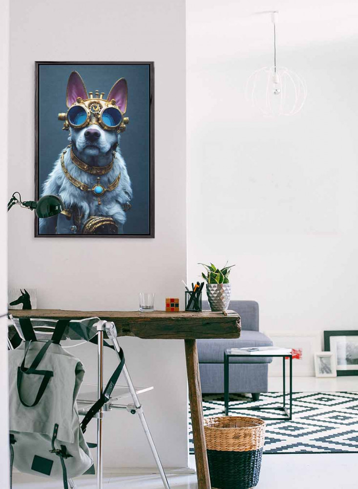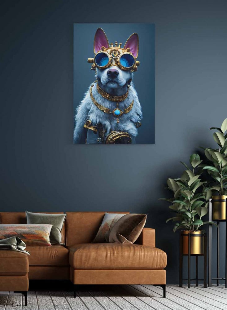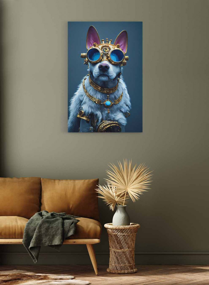 لوحة كانفاس على إطار خشبي، تصميم كلب مع نظارات، للمنزل، غرفة المعيشة، المكتب، الديكور
