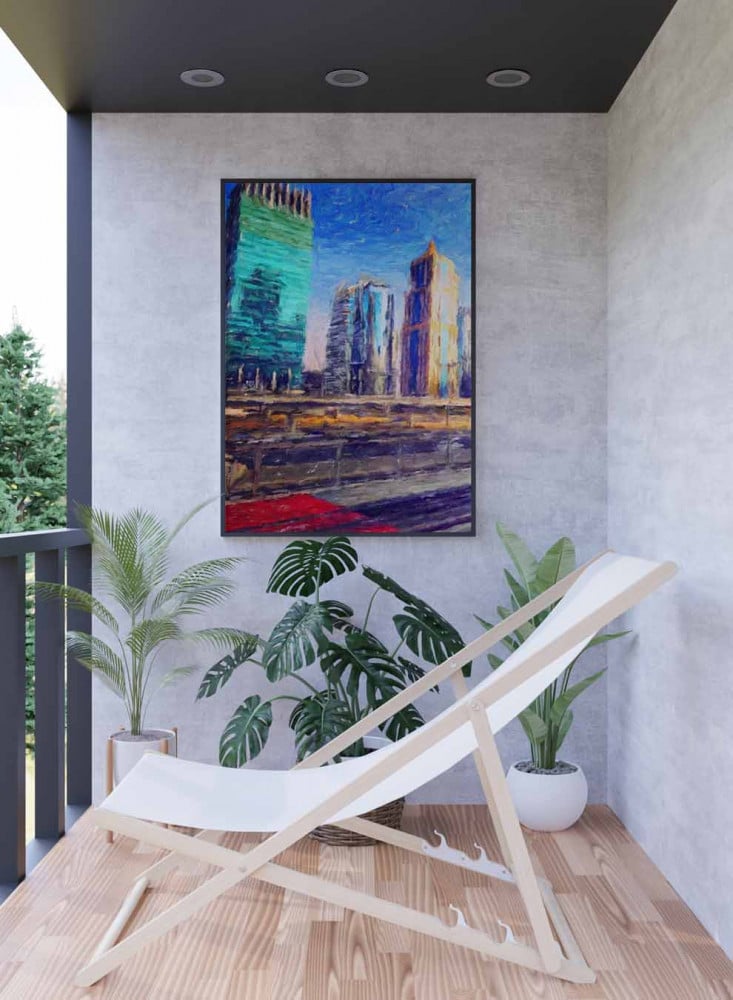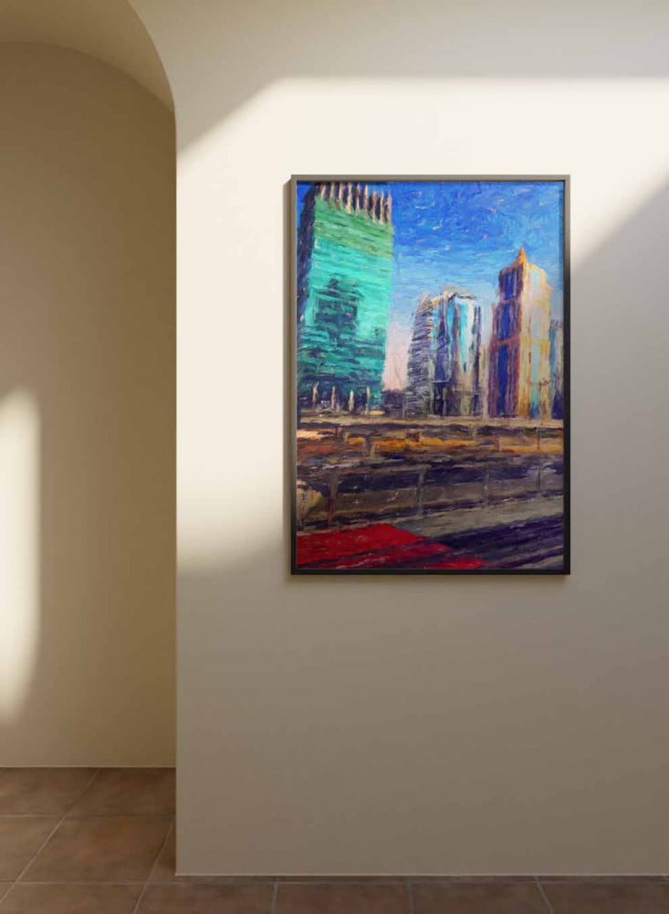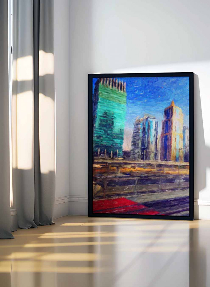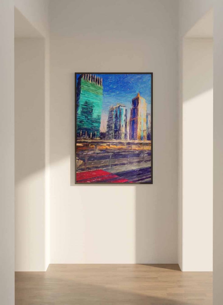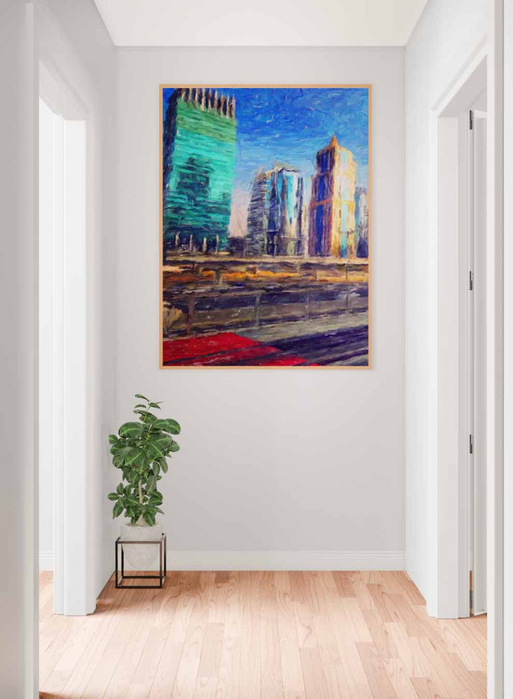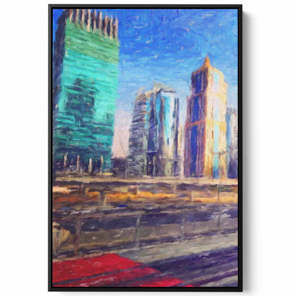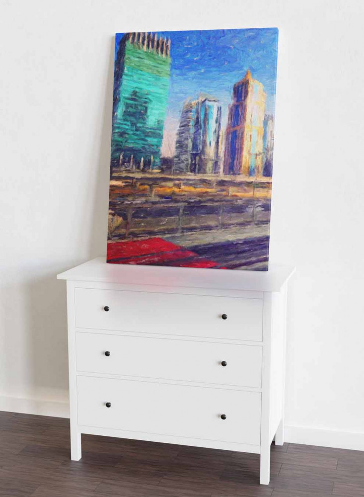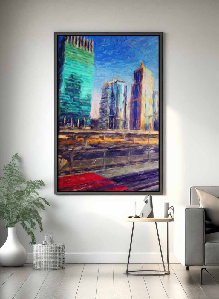 لوحة كانفاس على إطار خشبي، تصميم المدينة الحديثة ، للمنزل، غرفة المعيشة، المكتب، الديكور