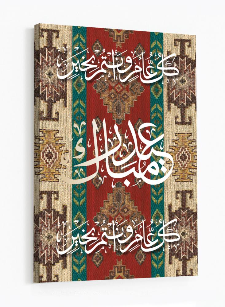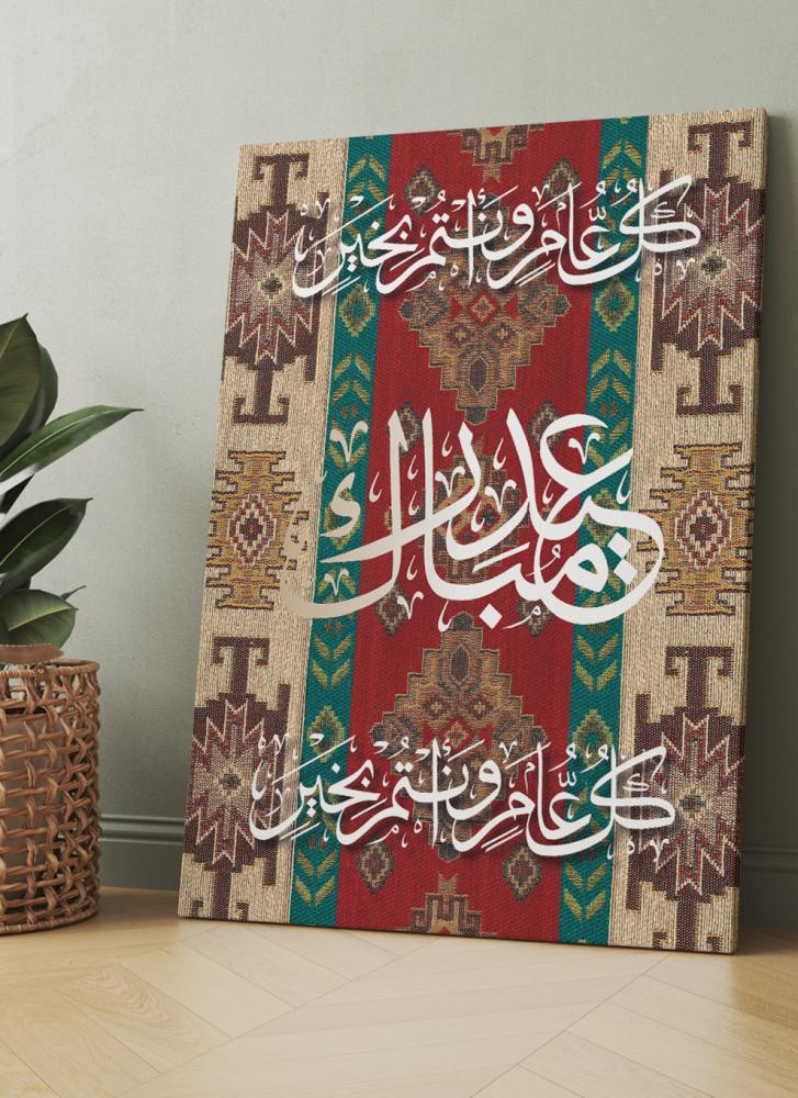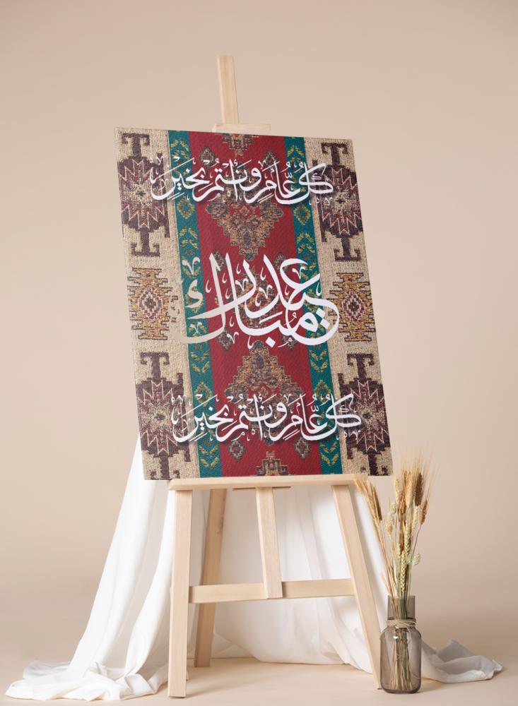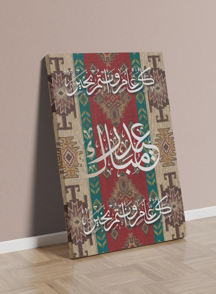 لوحة كانفاس على إطار خشبي بتصميم كل عام وأنتم بخير عيد مبارك على نمط سجادة