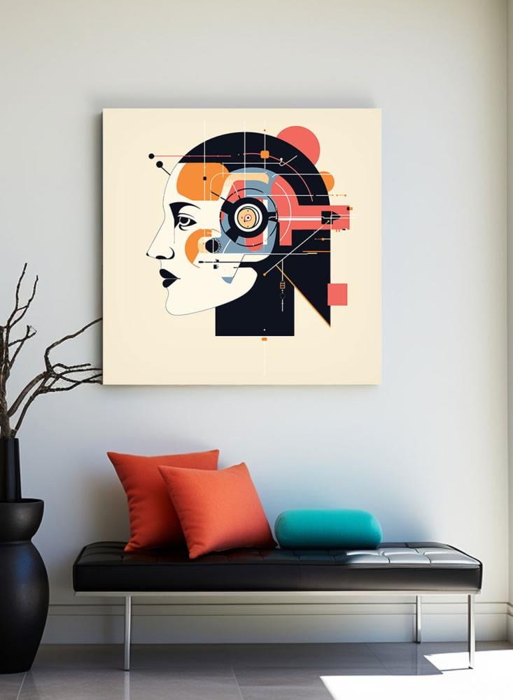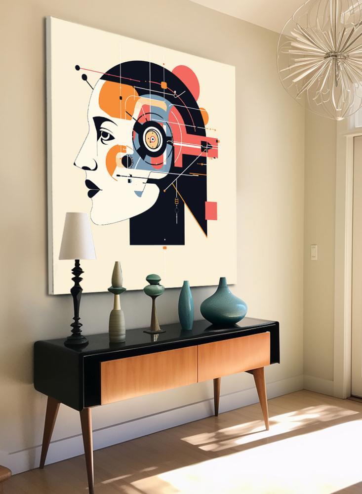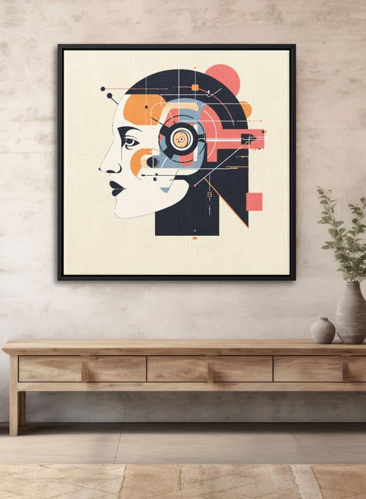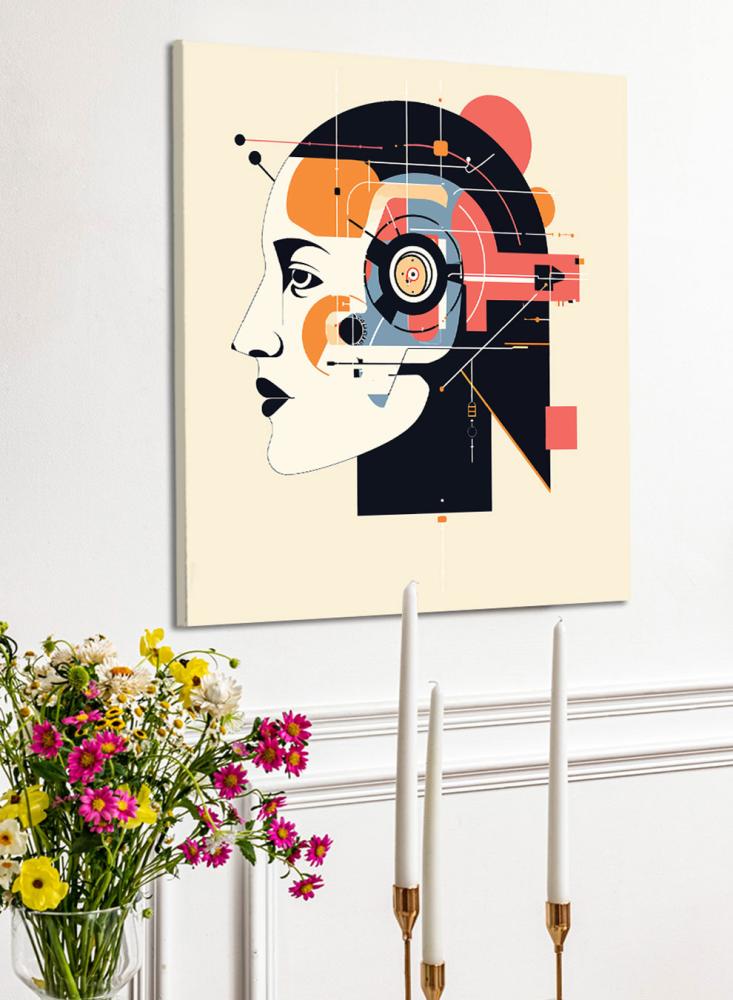 لوحة كانفاس على إطار خشبي بالفن التصوري لتصميم نمط فنى لامرأة