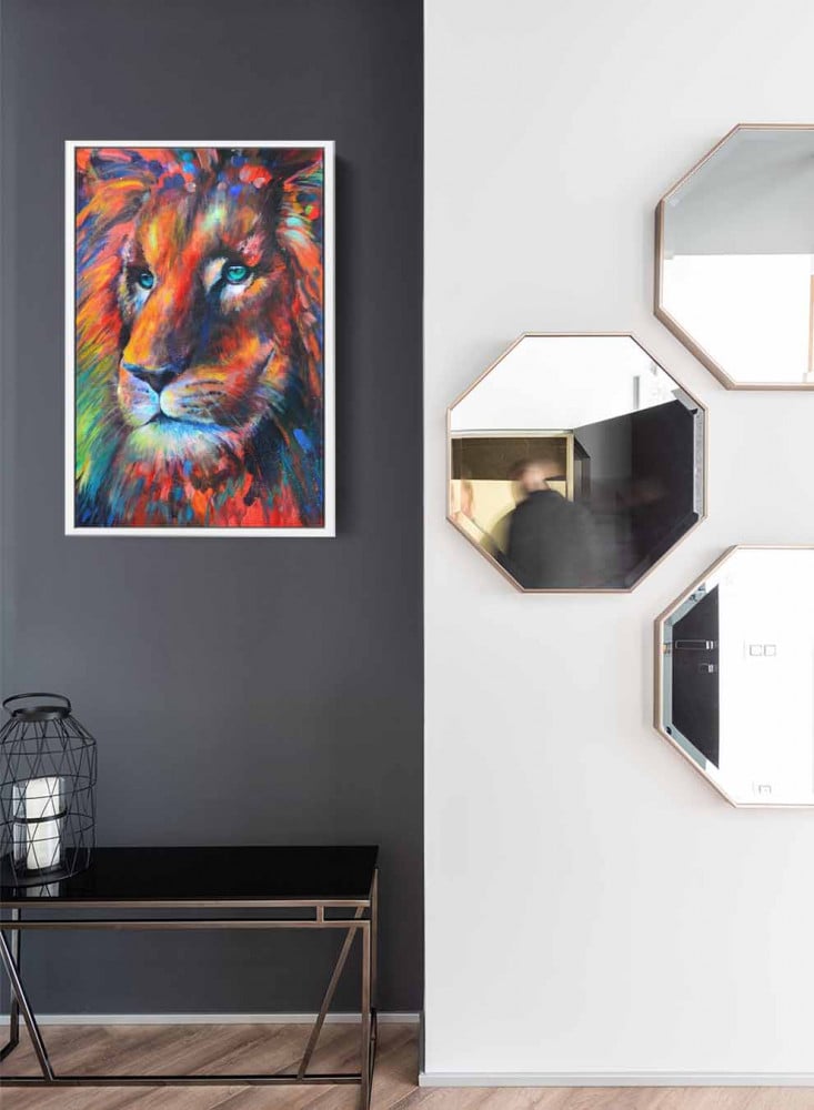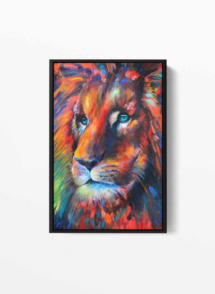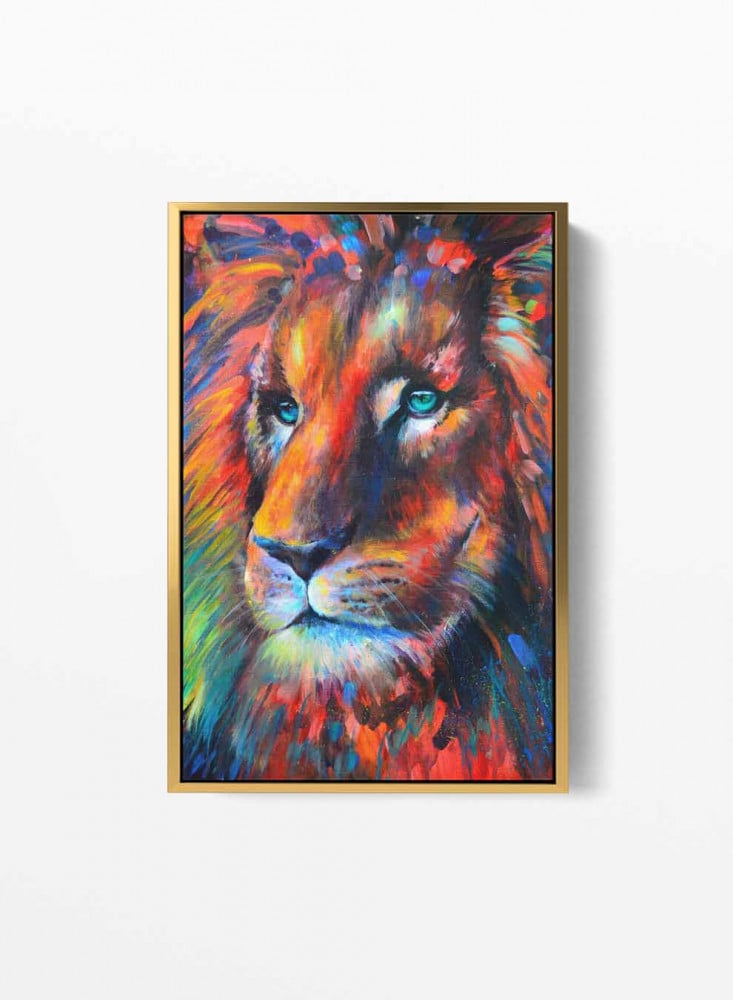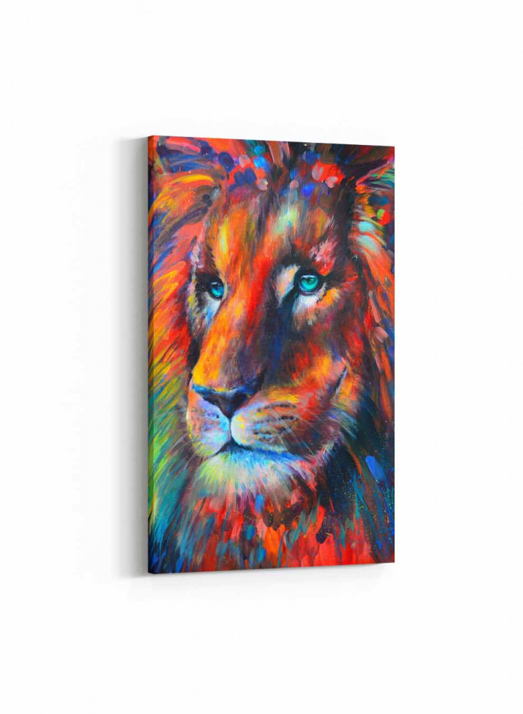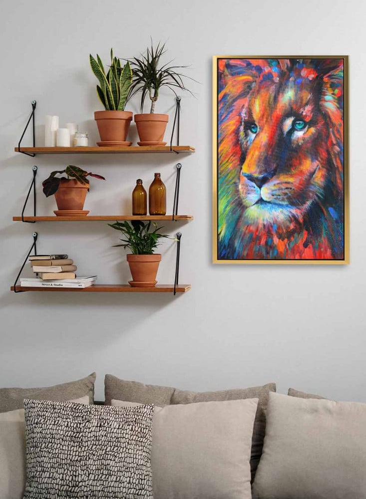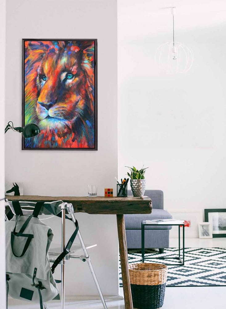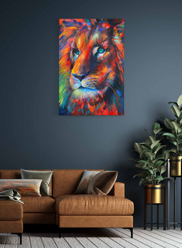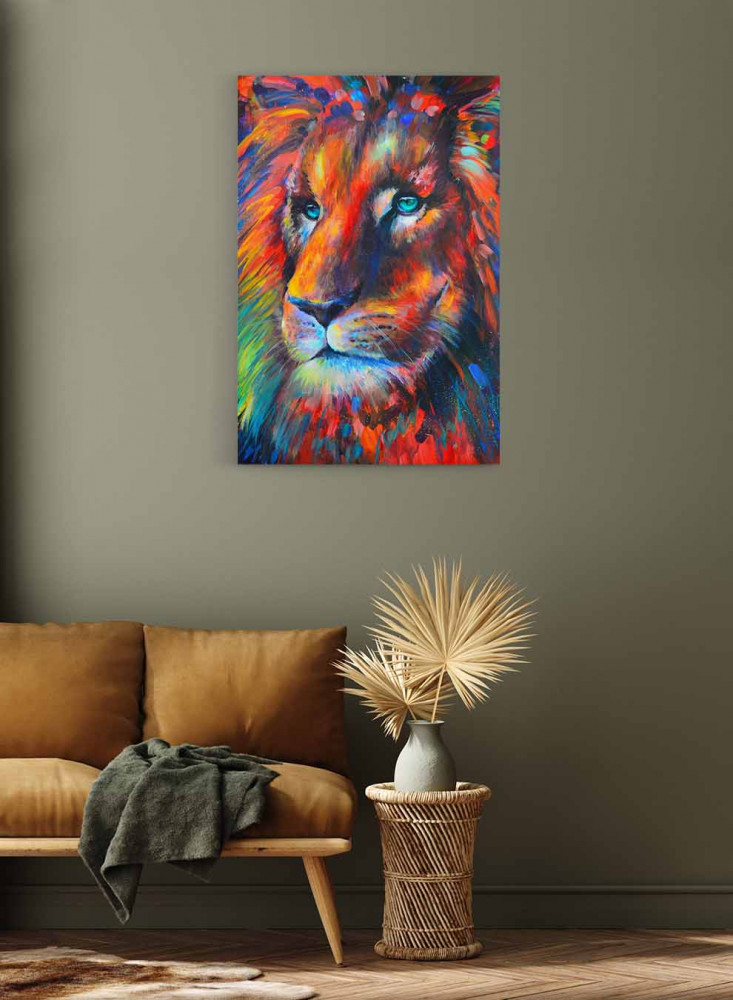 لوحة كانفاس على إطار خشبي، تصميم فن زيتي لأسد ملون، للمنزل، غرفة المعيشة، المكتب، الديكور