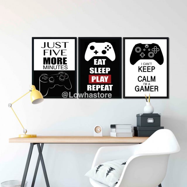 ديكور غرف قيمنق واحدة من أهم الأشياء التي تشغل بال محبي الألعاب، لكونها من أجمل و أروع الطرق لتجعل غرفتك مميزة للغاية. لذلك وفر عليك لوحة الكثير من البحث وقدم لكم طقم مكون من ثلاث لوحات مناسب بديكورات غرف قمينق بأفضل سعر وجودة.