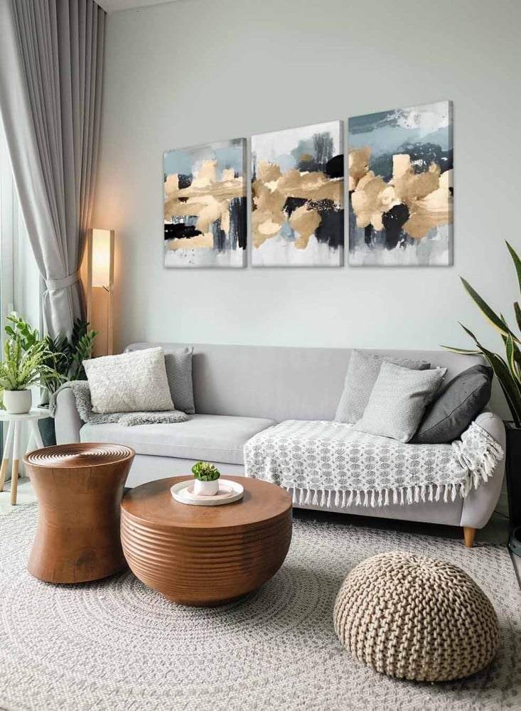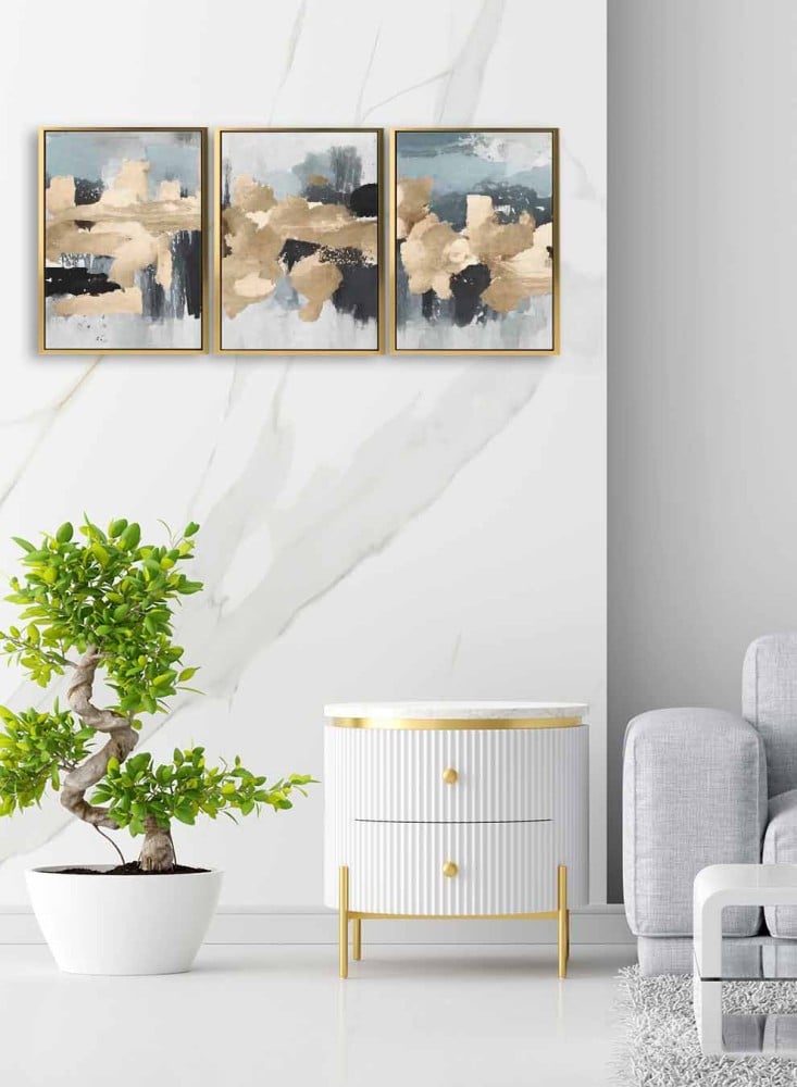 طقم من ٣ لوحات كانفاس على إطار خشبي بتصميم فن تجريدي