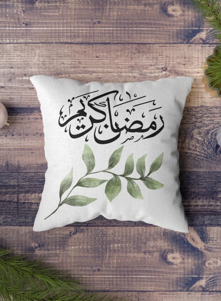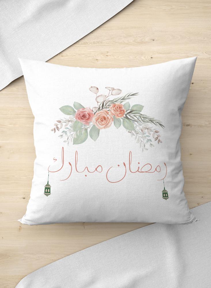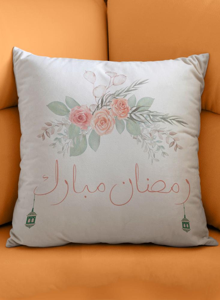 غطاء وسادة من البوليستر بتصميم رمضان كريم مع زهرة وردية