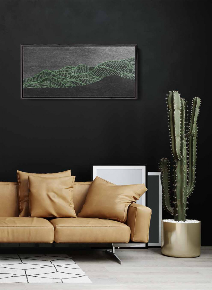 لوحة كانفاس على إطار خشبي بمنظر بانوراما، تصميم داكن، للمنزل، غرفة المعيشة، المكتب، الديكور