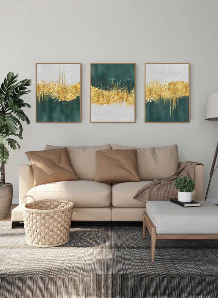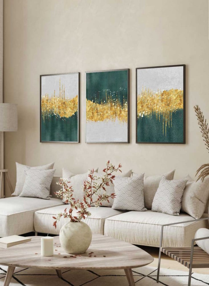 طقم من ٣ لوحات كانفاس على إطار خشبي، تصميم ملون، للمنزل، غرفة المعيشة، المكتب، الديكور