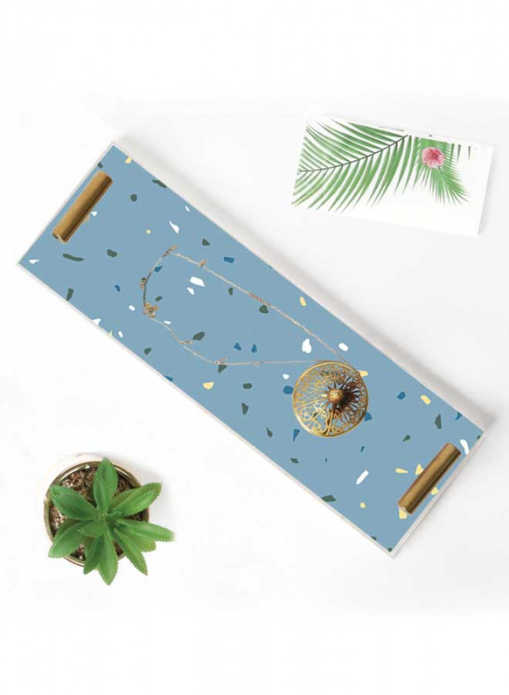 - صينية تقديم مصنوعة من الأكريليك مزخرفة بتصميم بالألوان المائية بمقابض معدنية ذهبية اللون