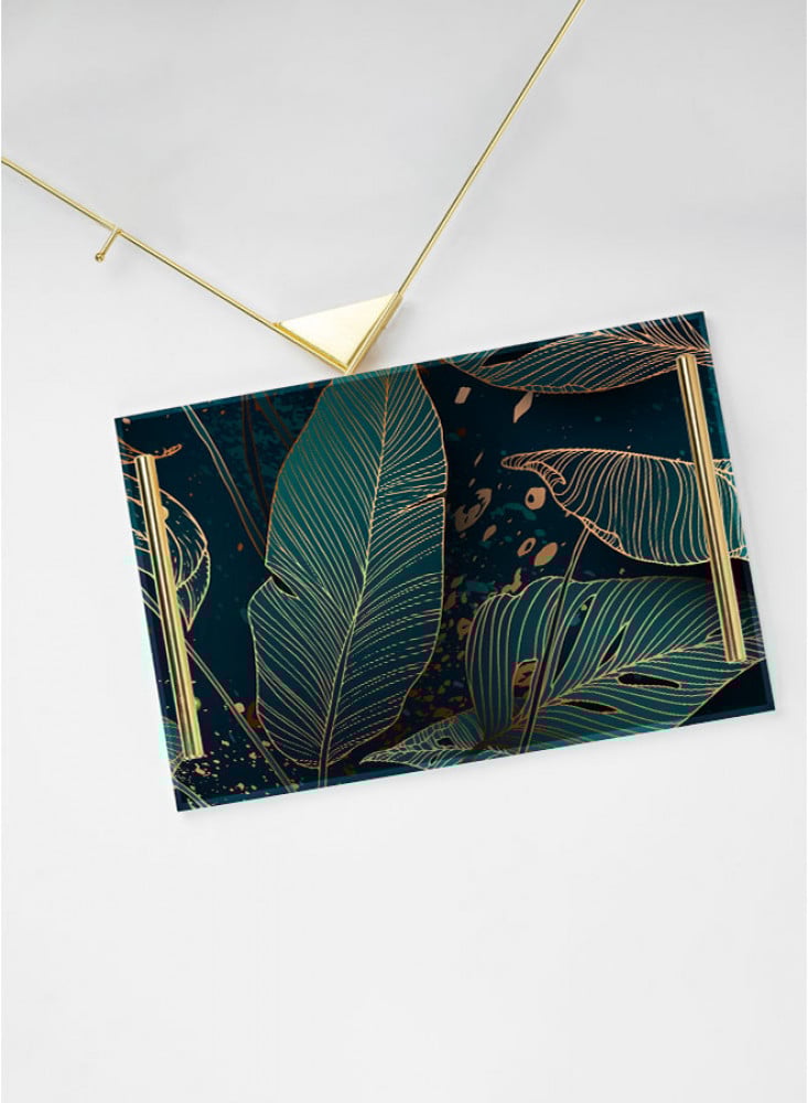 - صينية تقديم مصنوعة من الأكريليك بمقابض معدنية ذهبية اللون مزخرفة بتصميم فسيفساء