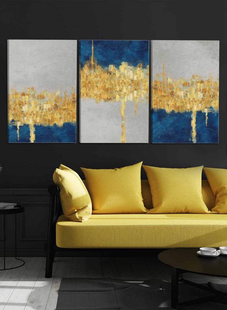 طقم من ٣ لوحات كانفاس على إطار خشبي، تصميم ملون، للمنزل، غرفة المعيشة، المكتب، الديكور
