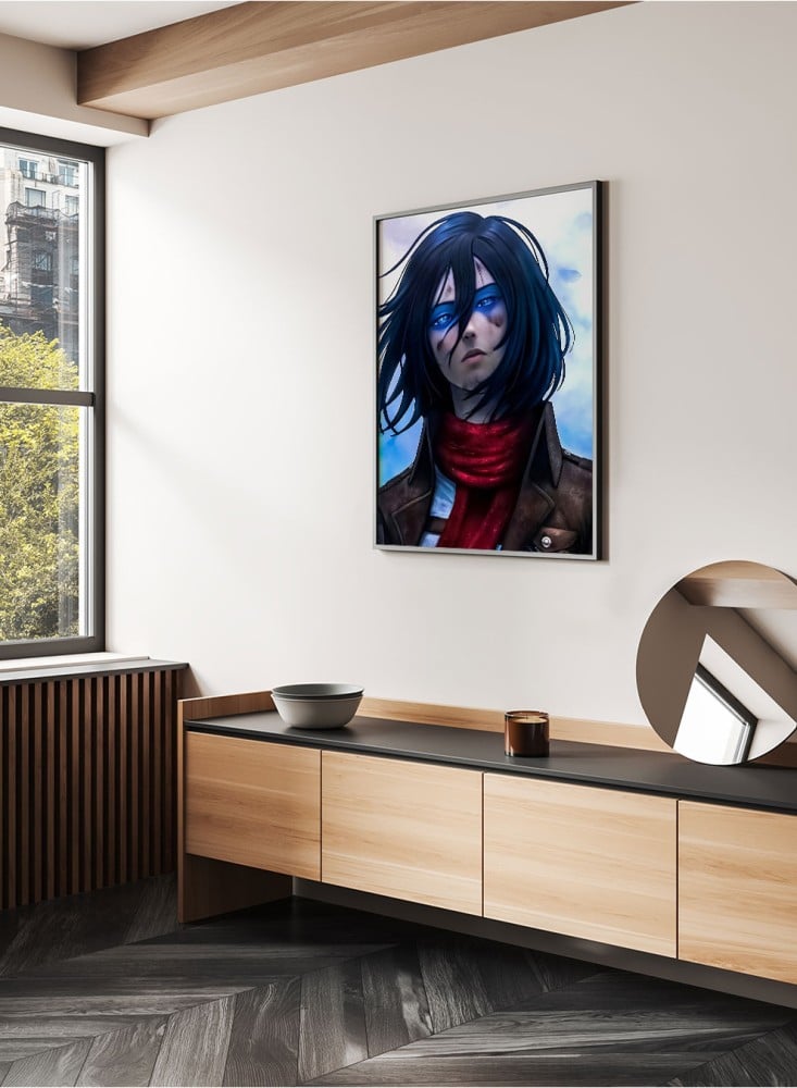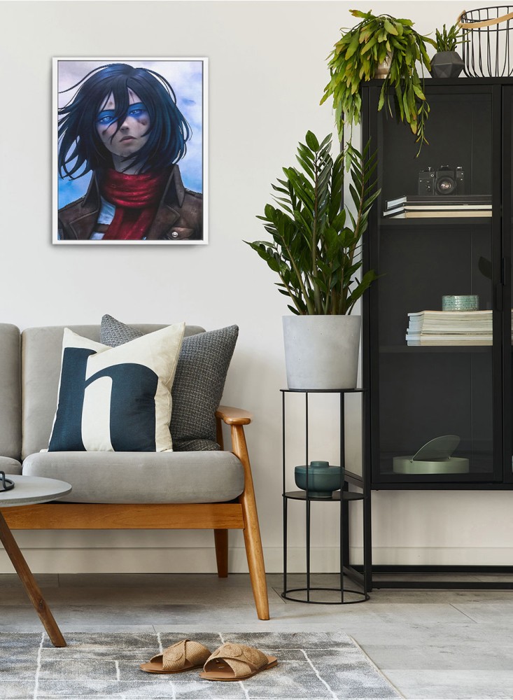 • لوحة كانفاس على إطار خشبي بتصميم ميكاسا اكرمان أنمي هجوم العمالقة.