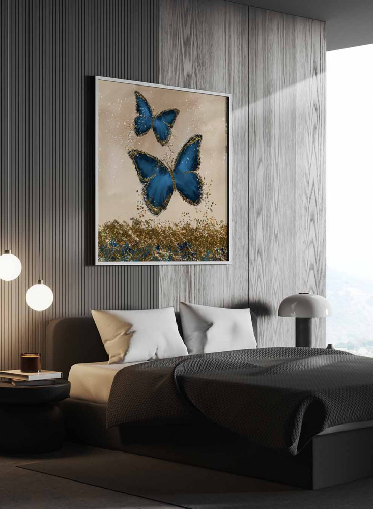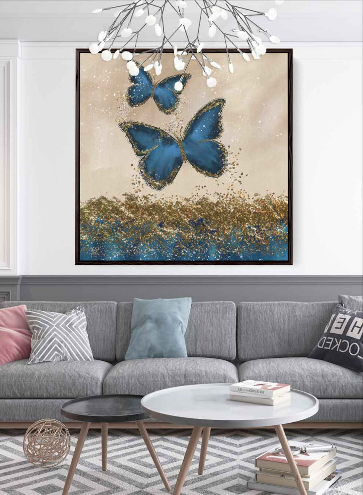 لوحة كانفاس مربع على إطار خشبي، تصميم فن تجريدي لفراشات ، للمنزل، غرفة المعيشة، المكتب، الديكور