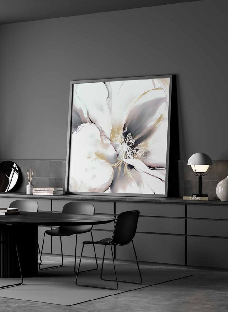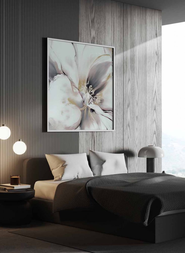 لوحة جدارية كبيرة بتصميم زهور مميزة بيضاء